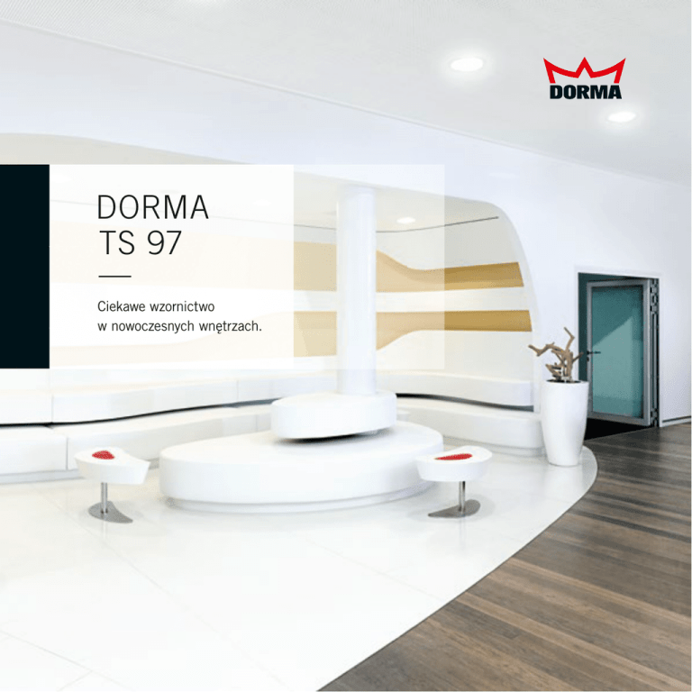 DORMA TS 97 — Ciekawe wzornictwo w nowoczesnych wnętrzach. TS 97 INNOWACYJNE KONCEPCJE ARCHITEKTONICZNE — Współczesna architektura charakteryzuje się wyrazistą formą zorientowaną na potrzeby użytkownika, tak aby jej wyraz estetyczny stanowił jedną z części harmonijnej całości. 2 Harmonia ogólnych doznań estetycznych nie powinna być niczym zakłócana, biorąc to pod uwagę firma DORMA zaprojektowała samozamykacz TS 97. Samozamykacz ten został tak zaprojektowany, że idealnie komponuje się z wysokiej jakości drzwiami w nowoczesnych wnętrzach. Zapewnia również wysoki komfort obsługi. DORMA TS 97 stanowi idealną syntezę formy i funkcjonalności. TS 97 DORMA TS 97 — Kolejny krok do świata funkcjonalnej estetyki. Produkt TS 97 firmy DORMA stanowi dopełnienie segmentu klasy premium. Wysoka jakość techniczna znajduje swój wyraz także w doskonałej stylistyce. Proste wzornictwo „countur design” doskonale sprawdza się w kompaktowych wymiarach samozamykacza. Charakterystyczna jest stała długość samozamykacza oraz szyny ślizgowej. Na korpusie samo zamykacza nie są widoczne śruby montażowe czy ozdobne rowki, także boki korpusu wykonane są w tej samej stylistyce z charakterystycznymi przetłoczeniami. Bogata oferta kolorystyczna zapewnia duże możliwości architektoniczne. DORMA TS 97 jest wysokiej jakości produktem architektonicznym pod każdym względem. DORMA 5 TS 97 GWARANCJA JEDNOLITEJ WIZJI OKUĆ — Samozamykacz i szyna ślizgowa tej samej długości. Nakładany samozamykacz TS 97 o bardzo małych wymiarach stanowi idealne rozwiązanie do różnego zastosowania. Samozamykacz ma zaledwie 37 mm. Do jego szerokości dopasowuje się idealnie szyna ślizgowa, która dodatkowo może być regulowana w pionie. Umożliwia to optymalizację ogólnych wrażeń estetycznych i dopasowanie do krawędzi drzwi. Do dyspozycji są różne warianty kolorystyczne. DORMA 7 TS 97 OGRANICZONY DO MINIMUM — Najmniejszy nawierzchniowy samozamykacz DORMA z szyną ślizgową. DORMA TS 97 wyróżnia się na rynku poprzez kompaktową konstrukcję i głębokość korpusu samozamykacza 37 mm. Dzięki takim wymiarom została osiągnięta wyjątkowa estetyka. Także patrząc z boku na TS 97 możemy stwierdzić, iż jest to najlepsze z możliwych rozwiązanie. — 37 mm 8 TS 97 POŁĄCZENIE NOWOCZESNEJ TECHNIKI I WZORNICTWA — Jakość wykończenia samozamykacza podkreśla ekskluzywny wygląd. DORMA TS 97 wyróżnia się swą wyjątkową formą. Elegancja samozamykacza jest podkreślana przez dostępność różnych wersji kolorystycznych, dzięki czemu łatwo wkomponowuje się do danego wnętrza. Szczególnie ekskluzywny wygląd zapewnia wykończenie aluminiowe korpusu oraz wykończenie typu „stal nierdzewna” i „polerowany mosiądz”. 10 Dostępne są także inne specjalne wersje kolorystyczne, przy czym kolorem standardowym jest srebrny i biały. Architekci mają więc duże możliwości projektowe w zakresie nowoczesnych rozwiązań techniki drzwiowej. TS 97 Nm — Regulacja siły samozamykacza EN 4 40 30 Moment przy otwieraniu Moment przy zamykaniu 20 10 0 0 30 60 90 130 — Mechanizm otwierający z zastosowaniem elementu krzywki sercowej powoduje znaczną redukcję oporu napotykanego podczas otwierania drzwi i wspomaga ich otwieranie, co docenią zwłaszcza osoby starsze i dzieci 160 DORMA 11 TS 97 — Wyraźnie łatwiejsze otwieranie dzięki technologii EASY OPEN z zastosowaniem krzywki sercowej. 12 TS 97 LŻEJSZE OTWARCIE O 40% — Otwieranie łatwiejsze o 40%. Jest to możliwe dzięki zastosowaniu w samozamykaczach DORMA z szyną ślizgową technologii EASY OPEN. Krzywka sercowa redukuje znacznie opór przy otwieraniu, tak że nawet dzieci są w stanie z łatwością otwierać drzwi. 40% mniejszy nakład sił oznacza tym samym otwieranie łatwiejsze o 40%. Ułatwia to codzienne funkcjonowanie nie tylko osobom starszym, ale także wszystkim innym użytkownikom. DORMA 13 TS 97 + 1,5 mm – 1,5 mm max. 120° — Regulacja wysokości szyny ślizgowej Celem optymalnego dopasowania do krawędzi drzwi szyna ślizgowa posiada regulację wysokości. — Ogranicznik otwarcia Zintegrowany w standardzie z szyną ślizgową ogranicznik otwierania (max. 120°) chroni, drzwi przed uszkodzeniami ścian, klamki czy skrzydła drzwi. max. 120° — Blokada kąta otwarcia drzwi Dostępna opcjonalnie jako akcesoria. 14 TS 97 SPRAWDZONA TECHNOLOGIA — TS 97 obok takiej zalety, jak mocno opadający moment przy otwieraniu drzwi oferuje także bezstopniową regulację siły zamykania i dobicia, co zapewnia bezpieczne zamykanie. Regulowana siła zamykania EN 2–4 umożliwia ich zastosowanie w drzwiach do maksymalnej szerokości 1 100mm. Samozamykacz posiada certyfikację EN 1154, znak oraz został sprawdzony pod względem jakości wg normy ISO 9001. Dane techniczne i charakterystyka Siła zamykaniarozmiar EN 2–4 Drzwi podstawowe 1 100 mm x Drzwi zewnętrzne, otwierane na zewnątrz – Drzwi przeciwpożarowe i dymoszczelne* x Identyczny montaż dla drzwi lewych i prawych x Szyna ślizgowa przesuwna x Bezstopniowa regulacja prędkości końcowej x Bezstopniowa regulacja końcowego zderzaka za pomocą zaworu x Mechaniczny ogranicznik otwarcia x Opóźnienie otwierania – Tłumienie otwierania – Blokada X Waga w kg 2,5 Wymiary w mm długość 340 szerokość 37 wysokość 49 Samozamykacz posiada certyfikację EN 1154 x Możliwy do stosowania w budownictwie bez barier wg DIN 18040 oraz DIN SPEC 1104 (CEN/TR 15894) x Oznaczenie x dla produktów budowlanych x Tak – Nie X Opcja * Dodatkowo jest wymagane świadectwo kwalifikacyjne używanych drzwi przeciwpożarowych i dymoszczelnych z DORMA TS 97. DORMA 15 WN 05265251532 · 01/13 · D · JP · 2 · 01/13 DORMA Polska Sp. z o.o. ul. Warszawska 72 05-520 Konstancin-Jeziorna Polska Tel. 22 736 59 00 Fax 22 736 59 01 www.dorma.pl