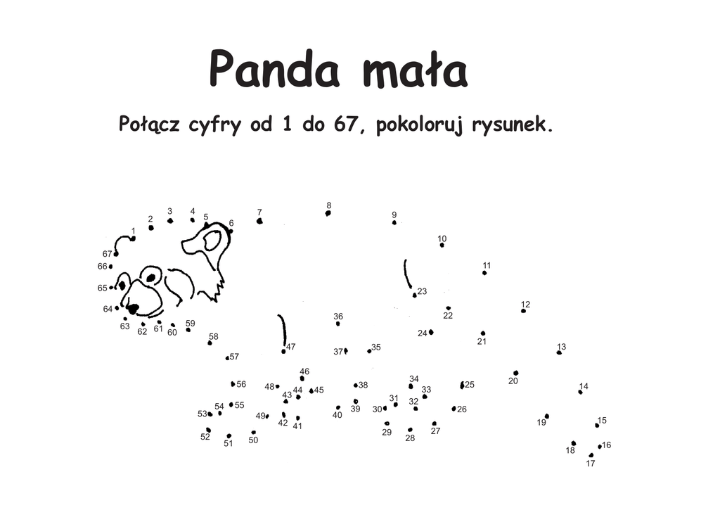 Po³¹cz cyfry od 1 do 67, pokoloruj rysunek. Panda ma³a