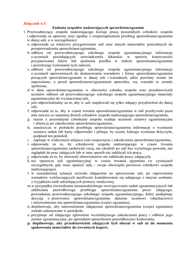 Załącznik 4.3. Zadania zespołów nadzorujących sprawdzian