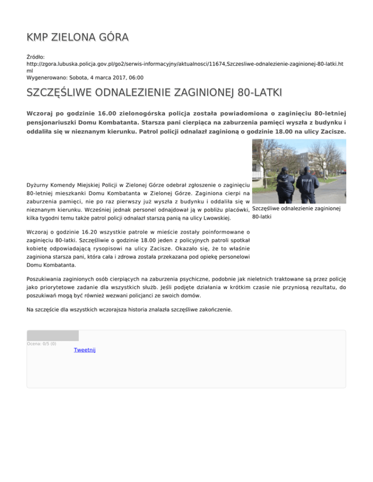 kmp zielona góra szczęśliwe odnalezienie zaginionej 80