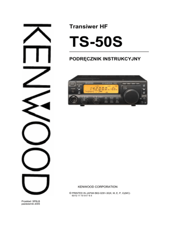 Transiwer HF TS-50S ––––––––––––––––––––––––––––––––––––––––––––––– PODRĘCZNIK INSTRUKCYJNY KENWOOD CORPORATION © PRINTED IN JAPAN B62-0291-30(K, M, E, P, X)(MC) 93/12 11 10 9 8 7 6 5 Przekład: SP6LB październik 2005 Transiwer Kenwood TS 50 WAŻNE INSTRUKCJE BEZPIECZEŃSTWA Dziękujemy za kupienie tego nowego transiwera. OSTRZEŻENIA BEZPIECZEŃSTWA Uwagi dla użytkownika: Jedno lub więcej z poniższych stwierdzeń może mieć zastosowanie do tego sprzętu. Przed użyciem urządzenia prosimy przeczytać wszystkie instrukcje na temat bezpieczeństwa i użytkowania tego urządzenia. Dla uzyskania najlepszych wyników przestrzegaj wszystkie ostrzeżenia na temat urządzenia i stosuj się do instrukcji użytkowania. Zapisz niniejszą instrukcję dla dalszych potrzeb. OSTRZEŻENIE FCC Urządzenie to generuje, lub wykorzystuje częstotliwości radiowe. Zmiany lub modyfikacje w ty sprzęcie mogą wywołać szkodliwe zakłócenia jeśli modyfikacje nie są wyraźnie akceptowane w niniejszym podręczniku. Użytkownik może utracić prawo do wykorzystywania tego urządzenia jeśli dokonane będą nieautoryzowane zmiany lub modyfikacje. 1. Źródła zasilania podłącz niniejsze urządzenie do źródła zasilania opisanego w instrukcji obsługi, lub do oznaczonego na samym urządzeniu. 2. Ochrona kabla zasilania Prowadź wszystkie kable zasilania w sposób bezpieczny. Zapewnij, aby nie chodzono po kablu i nie kaleczono kabla zasilania pobliskimi przedmiotami. Zwracaj szczególną uwagę na miejsce blisko gniazda AC, sznurów przedłużających i miejsca wejścia do urządzenia. Informacja dla użytkowników urządzeń cyfrowych, wymagana przez FCC: Urządzenie to zostało zbadane i stwierdzono zgodność z granicami dla cyfrowych urządzeń klasy B według Części 15 Przepisów FCC. Granice te są wyznaczone dla dania skutecznej ochrony przed szkodliwymi interferencjami w istniejącej instalacji. Urządzenie to generuje, korzysta i może generować energię częstotliwości radiowych i, jeśli nie jest zainstalowane w zgodzie z instrukcjami, może powodować szkodliwe interferencje w radiokomunikacji. Jednakże nie ma gwarancji, że nie wystąpią interferencje w niektórych instalacjach. Jeśli urządzenie to powoduje szkodliwe interferencje w odbiorze radiowym lub telewizyjnym, co można sprawdzić za- i wyłączając urządzenie, to użytkownik jest zachęcany do próby zmniejszenia interferencji jednym lub kilkoma następującymi środkami: – – – – Nigdy nie ciągnij za kabel 3. WYŁĄCZ ZASILANIE ! Zmienić kierunek lub położenie anteny odbiorczej. Zwiększyć odległość między urządzeniem i odbiornikiem. Podłączyć urządzenie do innego gniazda sieciowego, niż jest dołączony odbiornik. Skontaktować się z dostawcą na temat pomocy technicznej. ––––––––––––––––––––––––––––––––– Instrukcje bezpieczeństwa Nienormalny zapach Obecność nietypowego zapachu lub dymu jest często sygnałem problemu. Natychmiast wyłącz zasilanie i wyjmij kabel z gniazda sieciowego. Skontaktuj się z najbliższym centrum serwisowym po poradę. 2 4. Porażenie elektryczne Uważaj aby żaden przedmiot, lub płyn nie padł do środka przez otwory w obudowie. Przedmioty metalowe takie jak zatyczki do włosów, lub igły wstawione do urządzenia mogą stykać się z napięciem, wywołując rażenie elektryczne. Nigdy nie pozwalaj dzieciom wkładania czegoś do urządzenia. 5. Uziemienie i biegunowość Nie próbuj obejść metod stosowanych dla uziemienia i polaryzacji elektrycznej w urządzeniu, w szczególności związanych z kablem zasilania. –––––––––––––––––––––––––––––– Transiwer Kenwood TS 50 6. 9. Wentylacja Umieść urządzenie tak, aby wentylacja nie była zakłócona. Nie kładź na urządzeniu książek lub innych przedmiotów, które mogłyby zakłócić swobodny obieg powietrza. Zachowaj minimum 10 cm odstępu między tylną ścianką urządzenia a ścianą lub bokiem szafy. Linia zasilania Minimalna zalecana odległość zewnętrznej anteny od linii energetycznej wynosi półtora wysokości struktury podtrzymującej antenę. Pozwala to na zachowanie bezpiecznej odległości w przypadku, gdyby struktura wsporcza (maszt) uległa przewróceniu. 10. Ciepło Urządzenie trzymaj z daleka od źródeł ciepła takich jak kaloryfer, piec, wzmacniacz lub inne urządzenie wytwarzające dużo ciepła. 7. 8. Woda i wilgoć Nie korzystaj z urządzenia blisko wody lub źródeł wilgoci. Na przykład unikaj używania w pobliżu wanny, natrysków, basenów pływackich, lub w miejscach zaparowanych. 11. Czyszczenie Dla czyszczenia obudowy nie stosuj silnych rozpuszczalników takich jak alkohol, rozcieńczalnik do farb, benzyna. Stosuj czystą suchą szmatkę. Uziemienie anteny zewnętrznej Prawidłowo uziom wszystkie anteny zewnętrzne dołączane dla tego urządzenia stosując sprawdzone metody. Uziemienie pomaga w ochronie przed przepięciami elektrycznymi wywołanymi piorunami. Zmniejsza także ryzyko indukowania się ładunków elektrostatycznych. Rozdział 810 National Electrical Code, ANSI/NFPA 70 podaje informacje odnośnie właściwego uziemienia przewodu prowadzącego do odgromnika antenowego, wielkość przewodu uziemiającego, miejsca umieszczenia odgromnika antenowego, podłączenia do elektrod uziemiających i wymagania na temat elektrod uziemiających. Patrz poniższy rysunek. 12. Okres nieaktywności Gdy zespół nie jest stosowany przez długi okres czasu to odłącz kabel wejściowy od źródła zasilania. 13. Serwis Pokrywę zdejmuj tylko celem zainstalowania wyposażenia w sposób opisany w tym podręczniku, lub instrukcji wyposażenia. Stosuj się dokładnie do instrukcji, aby nie ulec rażeniu elektrycznemu. Jeśli nie jesteś zapoznany z tego rodzaju pracami, 
