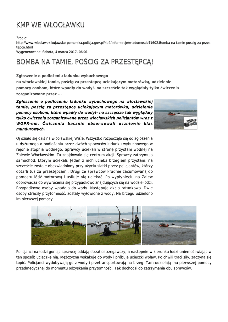 KMP WE WŁOCŁAWKU BOMBA NA TAMIE, POŚCIG ZA