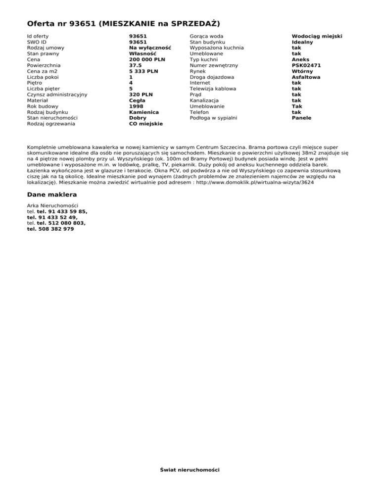 Oferta nr 93651 (MIESZKANIE na SPRZEDAŻ)