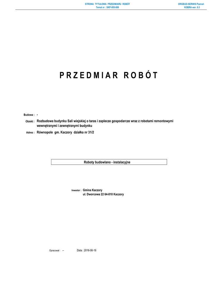 Przedmiar budow Rozbudowa budynku Sali wiejskiej o taras i