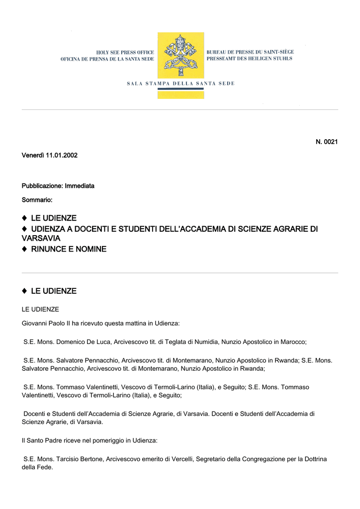 DEL SANTO PADRE● TRADUZIONE IN LINGUA ITALIANA