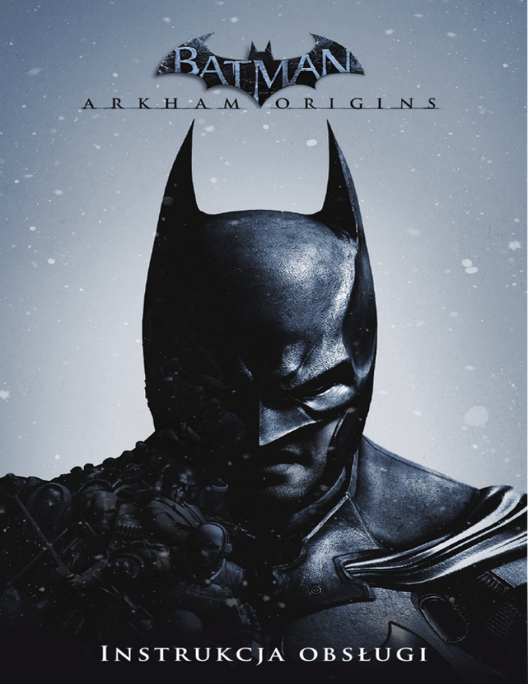 Instruk cja obsługi Spis Treści CZARNE ŚWIĘTA............................................................ 02 W YMAGANIA SYSTEMOWE....................................... 03 STEROWANIE................................................................... 03 ROZGRY WK A................................................................... 04 OPCJE GRY........................................................................ 15 MENU PAUZY................................................................... 16 ORIGINS Minęły niemal dwa lata, odkąd Bruce Wayne wrócił do Gotham. Przestępczość gwałtownie wzrosła, a skorumpowani oficerowie policji nie dążą do powstrzymania potężnej fali przestępstw. Nasz bohater walczy o utrzymanie porządku i zaprowadzenie sprawiedliwości tam, gdzie nikt o to nie dba. Jednak wciąż musi się sporo nauczyć. Nie jest jeszcze wyrafinowanym, skoncentrowanym Mrocznym Rycerzem i trudno przychodzi mu kontrolowanie porywczego charakteru. Do tego wszystko chce robić sam... BATMAN: OBSŁUGA KLIENTA I GWAR ANCJA........................ 22 BATMAN: ARKHAM NIEWIDZIALNY ŁOWCA W TRYBIE ONLINE.... 17 C z a r n e Ś w i ę ta ARKHAM ORIGINS Obecnym celem Batmana jest mężczyzna, który nazywa się Roman Sionis (pseudonim Czarna Maska). Ten genialny przestępca przejął kontrolę nad znaczną częścią świata przestępczego w mieście. Po długim dniu podążania po śladach nasz bohater powrócił do rezydencji Wayne’ów. Jest Wigilia, dlatego planuje spędzić miły, spokojny wieczór z Alfredem. Ale jego plany zostaną pokrzyżowane. Nad Gotham nadciągnęła potężna burza, która przyniosła nie tylko brzydką pogodę... 02 Wymagania Systemowe Zalecane: System operacyjny: 32-bitowy, Windows Vista, Windows 7, Windows 8 Procesor: Intel Core i5 750, 2,67 GHz | AMD Phenom II X4 965, 3,4 GHz lub lepszy z 768 MB+ pamięci VRAM (zgodny z DirectX 11) Pamięć: 4 GB RAM Karta graficzna: NVIDIA GeForce GTX 560 | AMD Radeon HD 6950 lub lepsza Wersja DirectX®: 11 Dysk twardy: 20 GB wolnego miejsca Inne wymagania: szerokopasmowe połączenie internetowe Dodatkowa informacja: system Windows XP i technologia DirectX® 9.0b oraz ich starsze wersje nie są obsługiwane. W/A/S/D ę Mysz Biegnij SPACJA (Przytrzymaj) Unik W/A/S/D + SPACJA, SPACJA Uderzenie Og Lewy przycisk myszy ą Środkowy przycisk myszy Kontra Prawy przycisk myszy Tryb widzenia detektywistycznego X Wyrzutnia haków F Wyceluj gadżet Prawy przycisk myszy (Przytrzymaj) Szybkie użycie batarangu 1 (Naciśnij) Kucnij LCTRL Użyj gadżetu Lewy przycisk myszy Wybierz gadżet Kółko myszy WayneTech TAB Pauza ESC Powiększenie Z ARKHAM ORIGINS BATMAN: ARKHAM System operacyjny: 32-bitowy, Windows Vista, Windows 7, Windows 8 Procesor: Intel Core 2 Duo, 2,4 GHz | AMD Athlon X2, 2,8 GHz lub lepszy Pamięć: 2 GB RAM Karta graficzna: NVIDIA GeForce 8800 GTS | AMD Radeon 3850 lub lepsza z 512 MB pamięci VRAM Wersja DirectX®: DirectX® 9.0c Dysk twardy: 20 GB wolnego miejsca Inne wymagania: szerokopasmowe połączenie internetowe Dodatkowa informacja: system Windows XP i technologia DirectX® 9.0b oraz ich starsze wersje nie są obsługiwane. Ruch BATMAN: ORIGINS Minimalne: S t ero wa n i e Op t ym a l n e : System operacyjny: 64-bitowy, Windows Vista, Windows 7, Windows 8 Procesor: Intel Core i5 750, 2,67 GHz | AMD Phenom II X4 965, 3,4 GHz lub lepszy Pamięć: 8 GB RAM Karta graficzna: NVIDIA GeForce GTX 780 Wersja DirectX®: 11 Dysk twardy: 20 GB wolnego miejsca Inne wymagania: szerokopasmowe połączenie internetowe Dodatkowa informacja: system Windows XP i starsze wersje nie są obsługiwane. 03 Rozgrywka Wa l ka Ekran Gry PD Zdrowie/ Pancerz Kompas Celownik BATMAN: ARKHAM 2. Zdrowie/Pancerz: Niebieski pasek pod wskaźnikiem PD pokazuje stan zdrowia Batmana. Modyfikacje z menu WayneTech umożliwiają zwiększanie opancerzenia stroju Batmana, dzięki czemu staje się on bardziej odporny na pociski z broni palnej lub ataki bezpośrednie. 3. Kompas: Kompas znajduje się na górze ekranu. Wyświetlane są tu punkty orientacyjne, wskazujące, w jakim kierunku powinien udać się Batman, aby dotrzeć do celu. 4. GADŻETY: W lewym dolnym rogu ekranu jest widoczny arsenał Batmana. Wykonując kolejne zadania, można odblokować dodatkowe gadżety. 5. CELOWNIK: Celownik jest wyświetlany, jeśli w pobliżu znajduje się gzyms, w który Batman może wycelować wyrzutnię haków, a także podczas ręcznego celowania gadżetem. Aby przetrwać noc i unieszkodliwić przeciwników, Batman musi wykorzystać wszystkie swoje umiejętności i wyostrzone zmysły. Kliknij lewym przyciskiem myszy, aby uderzyć. K o n t r o w a n i e Ata k ó w ARKHAM ORIGINS 1. PD: Zielony pasek w lewym górnym rogu pokazuje bieżący poziom doświadczenia Batmana (PD). Batman zyskuje PD, pokonując przestępców. Gdy zielony pasek się zapełni, można kupić modyfikację w WayneTech. BATMAN: ORIGINS GADŻETY Gdy wróg zamierza zaatakować Batmana, nad jego głową pojawia się ikona błyskawicy. Kliknij prawym przyciskiem myszy, zanim ta ikona zniknie, aby skontrować atak. Ogłuszenie Kliknij środkowym przyciskiem myszy, aby ogłuszyć przeciwnika peleryną. Gdy przeciwnik jest ogłuszony, Batman może wykonać rozwałkę, przypuścić atak z powietrza lub szybko uciec, korzystając z wyrzutni haków. Niektórych przeciwników trzeba ogłuszyć, żeby można było ich zaatakować. S z y bk i e U ż y wa n i e G a d ż e tó w Szybkie użycie batarangu 1 (Naciśnij 2x) Szybkie użycie pazura 2 (Naciśnij 2x) ycie wybuchowego elu Szybkie użycie detonatora ogłuszeniowego ycie granatu klejowego 3 (Naciśnij 2x) - (Naciśnij 2x) 5 (Naciśnij 2x) 04 unik Aby Batman przeskakiwał przez przeciwników lub robił uniki przed atakami, naciskaj dwukrotnie SPACJĘ. Łącz uderzenia, kontry, gadżety, ciosy ogłuszające i uniki, nie dając się trafić i nie pudłując, aby utworzyć kombinację. Kombinacje zwiększają liczbę PD otrzymywanych przez Batm