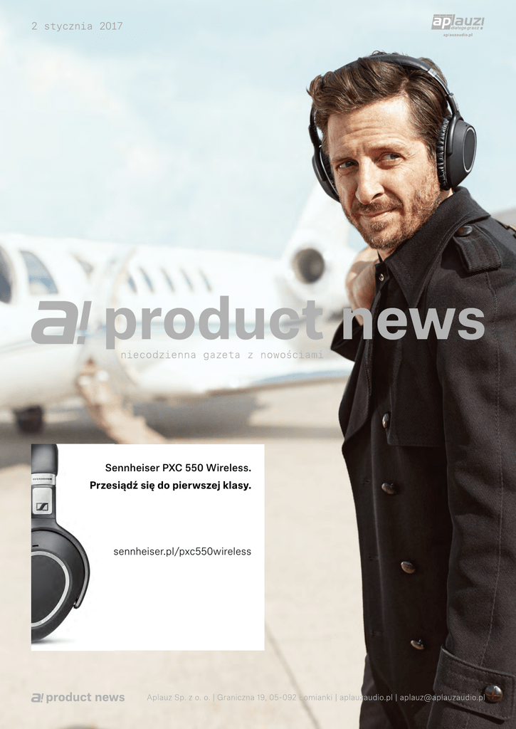 2 stycznia 2017 Sennheiser PXC 550 Wireless. Przesiądź się do pierwszej klasy. sennheiser.pl/pxc550wireless Odmień swoją podróż Dla wszystkich osób, które szukają optymalnych sposobów podróżowania, nadszedł czas zmian. Nowa konstrukcja PXC 550 Wireless, przygotowana przez naszych specjalistów audio, została zaprojektowana dla podróżujących biznesmenów, którzy mają wysokie wymagania w dziedzinie dźwięku. To wyjątkowo przyjazny towarzysz podróży, który zapewnia najwyższą jakość i owiane legendą brzmienie Sennheisera. Te eleganckie bezprzewodowe słuchawki posiadają najnowsze rozwiązania zasila- nia, które pozwalają nawet na 30 godzin działania. Dzięki prostej w użyciu aplikacji CapTune możesz spersonalizować wrażenia odsłuchowe podczas każdej podróży. Zupełnie jak w przypadku standardu najwyższej klasy biznesowej, PXC 550 Wireless wyprzedzają wszystkie potrzeby użytkownika, pozwalając mu podróżować z wyjątkowo wysokim poziomem komfortu, jaki zapewnia łączność bezprzewodowa, bez żadnych zakłóceń. Długodystansowe działanie Słuchawki Sennheiser PXC 550 Wireless zostały skonstruowane do zaspokojenia potrzeb osób często podróżujących. Zastosowano w nich układ zasilający z wydajnym akumulatorem zapewniającym do 30 godzin pracy. Nawet z włączoną funkcją eliminowania zakłóceń zewnętrznych NoiseGard™możesz przemierzyć cały świat na jednym ładowaniu. Przyjazny towarzysz podróży Słuchawki Sennheiser PXC 550 Wireless zapewniają wyjątkowo przyjemne doświadczenia podczas podróży, dzięki niezwykle łatwej ich obsłudze oraz dostępności wielu funkcji, które wychodzą naprzeciw potrzebom użytkowników. Zamontowany na nauszniku intuicyjny dotykowy panel kontroli oraz system komend głosowych pozwalają na wygodny wybór dostępnych ustawień. Dodatkowo, słuchawki PXC 550 Wireless potrafią automatycznie zawiesić odtwarzanie muzyki oraz rozmowę telefoniczną, gdy są one zdejmowane z głowy. Z bardziej wyrafinowanych rozwiązań należy wspomnieć funkcję wygodnego parowania NFC, która umożliwia transmisję sygnału audio wysokiej jakości z wykorzystaniem technologii Bluetooth. Pozwala to na uzyskanie znakomitego brzmienia, które dodatkowo można precyzyjnie dopasować do indywidualnych preferencji użytkownika. Spersonalizowane wrażenia słuchowe z CapTune™ Słuchawki PXC 550 Wireless oferują cztery presety ustawień charakterystyki brzmieniowej oraz tryb Director indywidualnej zmiany ustawień, który pozwala na łatwe dostrojenie brzmienia do naszych preferencji przy wykorzystaniu aplikacji Sennheiser CapTune™. Ta pierwsza aplikacja personalizacji brzmienia oferowana przez specjalistów audio z firmy Sennheiser została przygotowana z myślą o wymagających użytkownikach słuchawek. Aplikacja CapTune™ jest dostępna bezpłatnie dla smartfonów z systemem Android oraz iOS. Jest to zarówno wysokiej klasy odtwarzacz muzyki, jak też bardzo rozbudowane i wydajne narzędzie do indywidualnego dostrajania charakterystyki pracy, która zapewnia użytkownikowi ogromne możliwości kształtowania brzmienia. Oferując precyzyjną regulację przy wykorzystaniu korektora barwy oraz unikalną funkcję SoundCheck, dzięki której użytkownik może dokonywać zmian brzmienia odtwarzanej muzyki z użyciem testów porównawczych A/B różnych ustawień, aplikacja CapTune™ pozwala spersonalizować wrażenia słuchowe. Specjalnie opracowany plug-in dla słuchawek PXC 550 Wireless daje również możliwość indywidualnego ustawienia funkcji adaptacyjnej redukcji zakłóceń, zaimplementowanych komunikatów audio, czy też aktywacji funkcji Smart Pause. Rozmowa bez przerw, słuchanie bez zakłóceń Utrzymanie aktywnego połączenia podczas podróży jest teraz jeszcze łatwiejsze, a to wraz z niedoścignioną klarownością głosu podczas rozmów biznesowych i osobistych. Uzyskano ją dzięki zastosowaniu trzech mikrofonów, które tworzą macierz ze specjalnie ukształtowanym obszarem przechwytywania głosu. Niezależnie od tego, jak bardzo głośne jest otoczenie zewnętrzne, słuchawki PXC 550 Wireless oferują krystalicznie czysty głos i zapewniają podróżnym absolutnie prywatną przestrzeń do wypoczynku czy też skupienia się nad swoją pracą. Hybrydowe adaptacyjne rozwiązanie redukcji szumów Sennheiser NoiseGard™ umożliwia nieprzerwane słuchanie przez ciągłe i precyzyjne monitorowanie poziomu szumów zewnętrznych – zarówno w samolocie, pociągu czy zatłoczonej ulicy – w celu zapewnienia właściwego poziomu ich tłumienia. Jakość Sennheiser dla zapewnienia wyjątkowego komfortu Najwyższej klasy rozwiązania w zakresie ergonomii, bardzo lekka konstrukcja oraz wysokiej jakości materiały sprawiają, że bardzo eleganckie słuchawki PXC 550 Wireless są ekstremalnie komfortowe w użyciu, nawet przy najdłuższych sesjach odsłuchowych. Poduszki uszne zostały zaprojektowane w celu zapewnienia wyjątkowego komfortu, zgodnie z • Najwyższej klasy brzmienie • Aż do 30 godzin pracy na baterii • Hybrydowy adaptacyjny system redukcji szumów Sennheiser NoiseGard™ wytycznymi opracowanymi na podstawie specjalistycznych badań przeprowadzonych przez firmę Sennheiser w zakresie ergonomii związanej z budową ucha ludzkiego. A po zakończeniu podróży, dzięki składanej konstrukcji, możesz łatwo złożyć słuchawki i w tak kompaktowej formie umieścić w dołączonym futerale. • Składana konstrukcja i futerał premium w komplecie • Skórzane nauszniki • Czas pełnego naładowania: 3 h