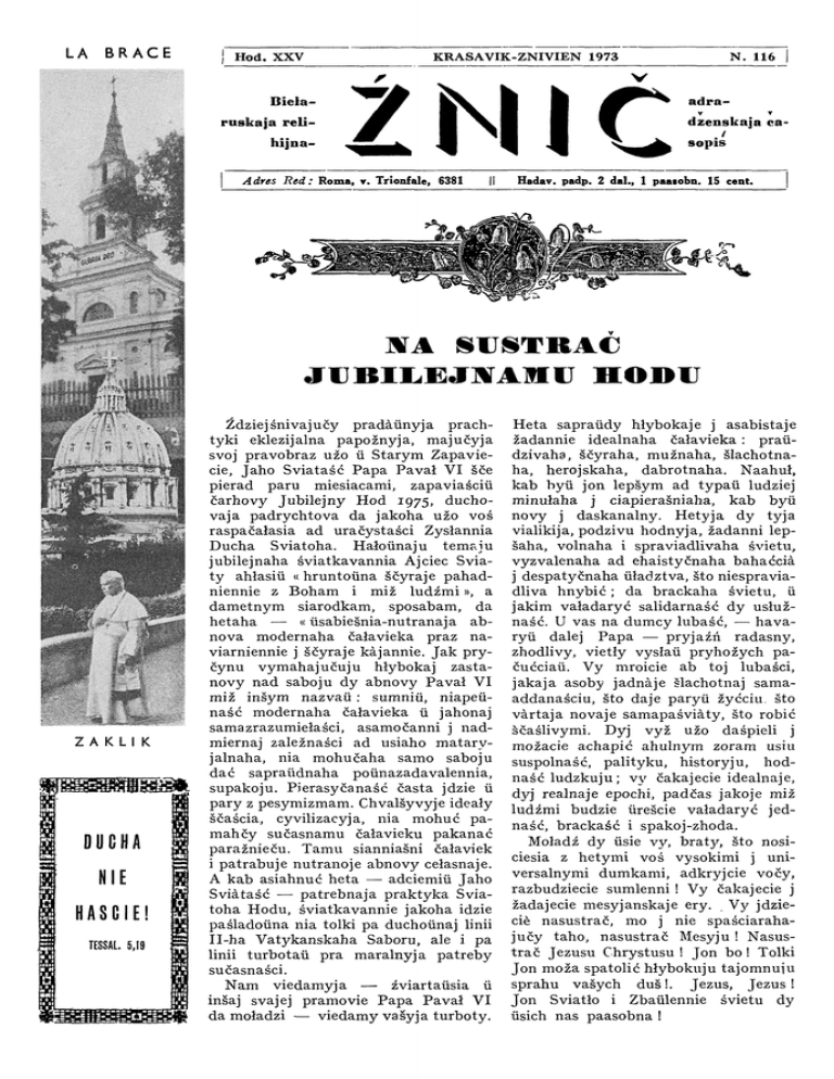 LA BRACE Hod. XXV KRASAVIK-ZNIVIEN 1973 Biełaruskaja relihijna- Ź MIČ Adres Red : Roma, v. Trionfale, 6381 N . 116 | adraV v dzenskaja casopis Hadav. padp. 2 dal., 1 paasobn. 15 cent. tJif F *f§ 1[A §V§TRA€ JlKILKJWHl HODl mmmmm^ Z A KLI K Ździejśnivajučy pradaünyja prachtyki eklezijalna papožnyja, majučyja svoj pravobraz užo ü Starym Zapaviecie, Jaho Sviataść Papa Pavał VI šče pierad paru miesiacami, zapaviaściü čarhovy Jubilejny Hod 1975, duchovaja padrychtova da jakoha užo voś raspačałasia ad uračystaści Zysłannia Ducha Sviatoha. Hałoünaju temaju jubilejnaha śviatkavannia Ajciec Sviaty ahłasiü «hruntoüna ščyraje pahadniennie z Boham i miž ludźmi», a dametnym siarodkam, sposabam, da hetaha — «üsabiešnia-nutranaja abnova modernaha čałavieka praz naviarniennie j ščyraje kajannie. Jak pryčynu vymahajučuju hłybokaj zastanovy nad saboju dy abnovy Pavał VI miž inšym nazvaü : sumniü, niapeünaść modernaha čałavieka ü jahonaj samazrazumiełaści, asamočanni j nadmiernaj 2aležnaści ad usiaho mataryjalnaha, nia mohučaha samo saboju dać sapraüdnaha poünazadavalennia, supakoju. Pierasyčanaść časta jdzie ü pary z pesymizmam. Chvalšyvyje ideały ščaścia, cyvilizacyja, nia mohuć pamahčy sučasnamu čałavieku pakanać paražnieču. Tamu sianniašni čałaviek i patrabuje nutranoje abnovy cełasnaje. A kab asiahnuć heta — adciemiü Jaho Sviataść — patrebnaja praktyka Sviatoha Hodu, śviatkavannie jakoha idzie paśladoüna nia tolki pa duchoünaj linii Il-ha Vatykanskaha Saboru, ale i pa linii turbotaü pra maralnyja patreby sučasnaści. Nam viedamyja — źviartaüsia ü inšaj svajej pramovie Papa Pavał VI da moładzi — viedamy vašyja turboty. Heta sapraüdy hłybokaje j asabistaje žadannie idealnaha čałavieka : praüdzivaha, ščyraha, mužnaha, šlachotnaha, herojskaha, dabrotnaha. Naahuł, kab byü jon lepšym ad typaü ludziej minułaha j ciapierašniaha, kab byü novy j daskanalny. Hetyja dy tyja vialikija, podzivu hodnyja, žadanni lepšaha, volnaha i spraviadlivaha śvietu, vyzvalenaha ad ehaistyčnaha bahaćcia j despatyčnaha üładztva, što niespraviadliva hnybić; da brackaha śvietu, ü jakim vaładaryć salidarnaść dy usłužnaść. U vas na dumcy lubaść, — havaryü dalej Papa — pryjaźii radasny, zhodlivy, vietły vysłaü pryhožych pačućciaü. Vy mroicie ab toj lubaści, jakaja asoby jadnaje šlachotnaj samaaddanaściu, što daje paryü žyćciu. što vartaja novaje samapaśviaty, što robić ščaślivymi. Dyj vyž užo daśpieli j možacie achapic ahułnym zoram usiu suspolnaść, palityku, historyju, hodnaść ludzkuju; vy čakajecie idealnaje, dyj realnaje epochi, padčas jakoje miž ludźmi budzie ürešcie vaładaryć jednaść, brackaść i spakoj-zhoda. Moładź dy üsie vy, brat)?-, što nosiciesia z hetymi voś vysokimi j universalnymi dumkami, adkryjcie vočy, razbudziecie sumlenni ! Vy čakajecie j žadajecie mesyjanskaje ery. . Vy jdziecie nasustrač, mo j nie spaściarahajučy taho, nasustrač Mesyju ! Nasustrač Jezusu Chrystusu ! Jon bo ! Tolki Jon moža spatolić hłybokuju tajomnuiu sprahu vašych duš!. Jezus, Jezus ! Jon Sviatło i Zbaülennie śvietu dy üsich nas paasobna ! ŹN I C 2 Dastojnaha N. 116 Jubilata AJCA IOANNA TARASEVICA, OSB U 5 0 - ŁECCIE S V I A T A H S T V A / I5.vn.i973. — vitaje Red. v Znicu SIAMJA CCORA, SIANNIA J ZAÜTRA Zajmiemsia prablemaj kryzysu üzrostu i daskanalennia siamji z psychasacyjalnaha punktu hledžannia, uzhodnienaha z egzystencjalnym. Paraünannie z minułym pasłužyć nam da vyznačeiinia napramku razvićcia dla budučaha. U abrazie, jaki my pakažam, najbolš revelacyjnym vysnavam budzie dvaistaść vynikaü sučasnych pieramienaü adnačasna ü padvojnym napramku: pazytyünym i admoünym, hetak zvanaja ambivalencja. Inakš kažučy, budzie karysna üžo napierad razhledzieć adnu z mahčymaśćiaü adkazu na pytannie, ci razvićcio siamji treba üvažać za karysnaje, ci nie. Jak ubačym, takoje razvićcio sulić vartyja adnatavannia mahčymaści jak dla karysnaha tak i dla admoünaha razvićcia, z niebiaspiečnaj pieravahaj sučasnych admoünych tendencjaü. Dvaistaść (ambivalencja) razvićcia. Pryhledźmosia hetaj ambivalencji. Pierachod siamji ad šmatlikaj i patryarchalnaj, zharmanizavanaj z ziemlarobstvam formy, da hetak zvanaj nuklearnaj, jakaja zachoüvaje tolki «jadro» (pa łacinie «nucleus») i składajecca tolki z baćki, matki j dziaciej, typovaj dla haradzkoj i pramysłovaj cyvüizacji, sulić biaz sumnivu karysnyja mahčymaści pakolki datyčyć razvićcia indyvidualnaści muža j žonki praz ichnuju aütanomiju dyj padzieł adkaznaści. U patryarchalnaj siamji « hałavar » kamandavaü až da śmierci, nakładajučy, a prynamsia dajučy pačuć svaju volu navat užo užrosłym dzieciam, žanatym i majučym svaich dziaciej. Siannia maładyja staviać jak uhavor suženstva mahčymaść «pastavić chatu », dzie-b jany mahli adrazu pa šlubie zahaspadarycca, pieramahčy pieršyja trudnaści dy svabodna datasavacca da siabie. Heta jość dobraja reč, adnak užo ü hetym jość i svaja niavyhoda, bo maładym nie chapaje pomačy, pamiarkoüvajučaj prysutnaści staršych z ichniaj radaj i daśviedčanniam, jak heta byvała kaliś i tamu heta novaja forma pahražaje siamji niastałaściaj. U novaj sytuacji aprača taho ü sposab krytyčny stavicca prablema pracy paza domam maładoj mamy. U bolšych haradoch časta maładoje suženstva šukaje blizaści matki maładuchi, kali jana üžo čakaje dziaciaci, asabliva pieršaha, kab paručyć jej apieku nad unučkam, što daje baćkam mahčymaść nie adryvacca ad svaich zaniatkaü. Druhaja niekarysnaja mahčymaść moža pajavicca z pryvyčki da üzrastajučaha dabrabytu. Jana pažadana, bo zvalniaje siamju ad niapeünaści ab zaütrašnim dniu i pazvalaje znajści dostup da vyšejšych formaü dziejnaści jak i da pryjemnaściaü. Adnak kali jana stan