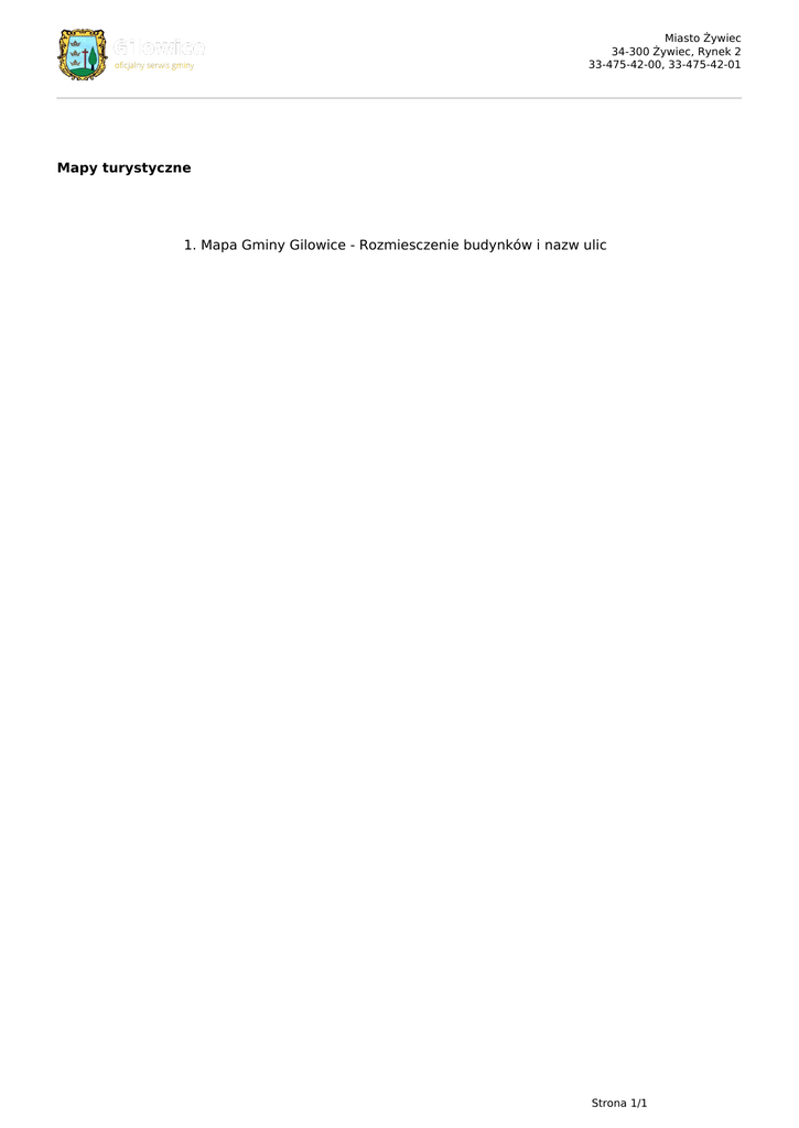 Miasto Żywiec 34-300 Żywiec, Rynek 2 33-475-42-00, 33-475-42-01 Mapy turystyczne 1. Mapa Gminy Gilowice - Rozmiesczenie budynków i nazw ulic Strona 1/1 Powered by TCPDF (www.tcpdf.org)