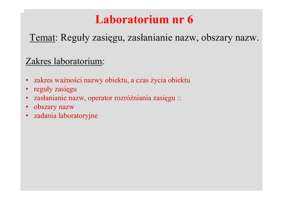 Temat: Reguły zasięgu, zasłanianie nazw, obszary nazw.