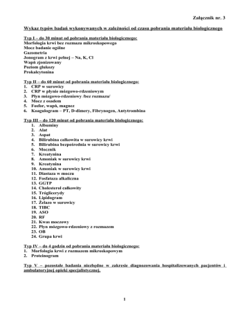 Załącznik nr. 3 Wykaz typów badań wykonywanych w zależności od