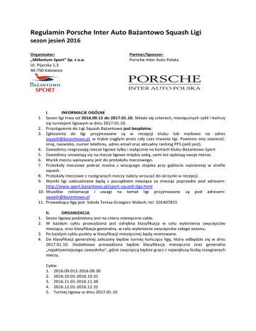 Regulamin Porsche Inter Auto Bażantowo Squash Ligi