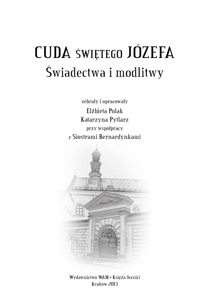 3 WSTĘP CUDA ŚWIĘTEGO JÓZEFA Świadectwa i modlitwy CUDA ÇWIÞTEGO JÓZEFA Çwiadectwa i modlitwy zebrały i opracowały Elżbieta Polak zebraáy i opracowaáy Katarzyna Pytlarz ElĪbieta Polak przy współpracy Katarzyna Pytlarz przy wspóápracy z Siostrami Bernardynkami z Siostrami Bernardynkami Wydawnictwo WAM ♦ Księża Jezuici Kraków 2013 5 WSTĘP Wstęp Z Ewangelii dowiadujemy się, że św. Józef był człowiekiem prostym, skromnym i ubogim, chociaż pochodził z królewskiego rodu Dawida. Prosta była przede wszystkim jego dusza. Prostota duszy Józefa nie oznaczała wcale, że nie umiał dostrzegać trudności i problemów swego życia w całej ich zawiłości. Podchodził do nich śmiało i rozwiązywał je roztropnie, a uważność na wszystkie rzeczy świadczyła o jego mądrości. Mieszkał w małym galilejskim miasteczku Nazaret, gdzie wykonywał zawód cieśli. Jako młody człowiek wyróżniał się pobożnością i szlachetnym charakterem. O jego wielkości zadecydował fakt, że Bóg wybrał go na ziemskiego opiekuna dwóch Najświętszych Istot: Jezusa, swego Syna, i Maryi, Jego Matki. Jakże mógłby Józef kierować rodziną, która została mu powierzona, gdyby nie był obdarzony mądrością? Bóg, który go przeznaczył na głowę Świętej Rodziny, 6 WSTĘP dał mu w swej Opatrzności prawdziwą mądrość. Udzielił mu zdolności oceniania rzeczy według ich istotnej wartości, dostrzegania lepszej strony każdej sprawy, postępowania zgodnie ze zdrowym rozsądkiem w okolicznościach najbardziej drażliwych. Jego niezwykle prostolinijna lojalność względem Boga nie ulegała żadnym poruszeniom miłości własnej, dlatego nie mogło być komplikacji w jego życiu. Józef przywykł się poświęcać i usuwać na plan drugi. Odrzucał wszelkie skryte zabiegi, do których posuwają się egoizm i pycha. Prostotę swą zawdzięczał prawości swych intencji i szczerej miłości. Życie ludzi komplikuje ich miłość własna, która szuka zadowolenia, upomina się o swe prawa, nie uznaje niepowodzeń, chwyta się rozmaitych sposobów, byle tylko zapewnić triumf ambicji. Osobliwy jest los tego wielkiego Świętego. Przypadło mu bowiem w udziale to, co najgorsze na ziemi i to co najlepsze mogło dać niebo. Nie posiadał on zaszczytów i chwały, pieniędzy i dostatku, władzy i poważania, miłości ziemskich i rozmaitych przyjemności, ani osobistej sławy czy też budzącego szacunek zawodu. Nie było powodu, dla jakiego sam mógłby się uważać, czy też być przez innych uważany za kogoś wybitnego. Nie posiadał nic z tego, co świat ceni. Od Boga natomiast otrzymał św. Józef to, czego Stwórca nie powierzył nikomu innemu na świecie – żadnemu najpotężniejszemu, najbogat- 7 WSTĘP szemu, najsławniejszemu czy też najznakomitszemu z ludzi. Właśnie Józefowi Bóg powierzył swego Jednorodzonego Syna i Jego Matkę Maryję. Nikomu z ludzi nie było dane tak wielkie wyróżnienie od Boga i takie uniżenie ze strony ludzi. Dzięki misji, jaką miał spełnić wobec Jezusa i Maryi, zwłaszcza jako przybrany ojciec Bożego Syna, św. Józef przewyższa godnością wszystkich świętych. Wyznaczone mu z woli Bożej zadanie wypełnił najdoskonalej. Był kochającym, wiernym małżonkiem, wzorowym ojcem, żywicielem i obrońcą Świętej Rodziny. Józef pojmował swój autorytet głowy rodziny jako służbę. Jak naucza Jan Paweł II: Posłużył się władzą, przysługującą mu prawnie w świętej Rodzinie, aby złożyć całkowity dar z siebie, ze swego życia, ze swej pracy (Redemptoris custos, nr 8). Pragnął bowiem z całej duszy nie panować nad innymi, ale im służyć. Uważał swą władzę za przywilej świadczenia drugim większej dobroci. Wszelka władza nad innymi jest ostatecznie tylko możliwością kochania. Jako głowa rodziny Józef się cieszył, że może głębiej kochać Maryję i Jezusa. Święty Józef żył, służąc swej Oblubienicy i Boskiemu Synowi; tym samym stał się dla wierzących wymownym świadectwem tego, iż „panować” znaczy „służyć”. Z jego przykładu mogą czerpać naukę 8 WSTĘP życiową zwłaszcza ci, którzy w rodzinie, w szkole i w Kościele pełnią rolę ojców i przewodników. Dla ojców rodzin jest Józef najwspanialszym wzorem ojcowskiej czujności i opieki; dla małżeństw doskonałym przykładem miłości, zgody i wierności małżeńskiej. Dla św. Józefa było oczywiste, że im dojrzalsza i silniejsza jest miłość mężczyzny do żony i dziecka, tym bardziej on sam pragnie pozostać w cieniu i ukryciu. Im bardziej ktoś kocha, tym dyskretniej to czyni. Święty Józef dowodzi, że aby być dobrym i autentycznym naśladowcą Chrystusa, nie trzeba dokonywać „wielkich rzeczy”. Wystarczy posiąść cnoty zwyczajne, ludzkie, proste, byle prawdziwe i autentyczne. Powołanie Józefa z Nazaretu było wyjątkowe, związane z tajemnicą Wcielenia, skoncentrowane na Osobie Zbawiciela świata i Jego Matce. Wyjątkowość tego powołania wyrażała się w paradoksach. Prawdziwe małżeństwo z Maryją miało charakter dziewiczy, a pełne ojcostwo wobec Jezusa nie zawierało elementu fizycznego rodzenia. Zarówno małżeństwo, jak i ojcostwo Józefa odbiegało od wszelkich ludzkich prawideł i zwyczajów. Wiara nam jednak przypomina, że „dla Boga nie ma rzeczy niemożliwych” (Łk 1, 37). Bóg stwarza człowieka według swojego odwiecznego planu. Wyposaża go tym samym we wszystko, co niezbędne do pójścia za tym planem. Święty Tomasz z Akwinu mówi o odpowiedniości cnót do po- 9 WSTĘP wołania. Bóg tych ludzi, których do czegoś wybiera, tak przygotowuje i usposabia, żeby byli zdolni do wykonania tego, do czego zostali powołani. Wzywając więc do wielkich zadań, Bóg wyposaża w odpowiednie zdolności i łaski. Józef pełnił obowiązki stróża, opiekuna i obrońcy Świętej Rodziny, której był głową. Nie możemy mieć żadnej wątpliwości, że dzięki łas