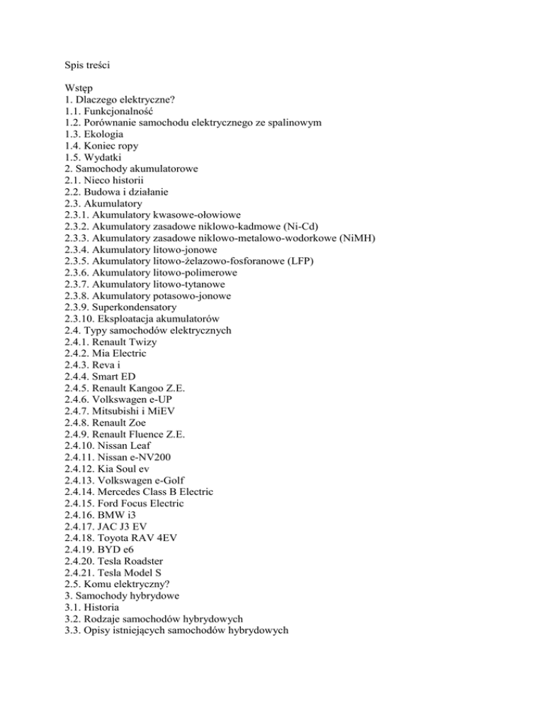 Spis treści Wstęp 1. Dlaczego elektryczne? - katalog główny