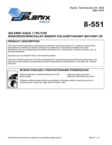 Karta Techniczna Nr: 604 SELEMIX AQUA 1.785