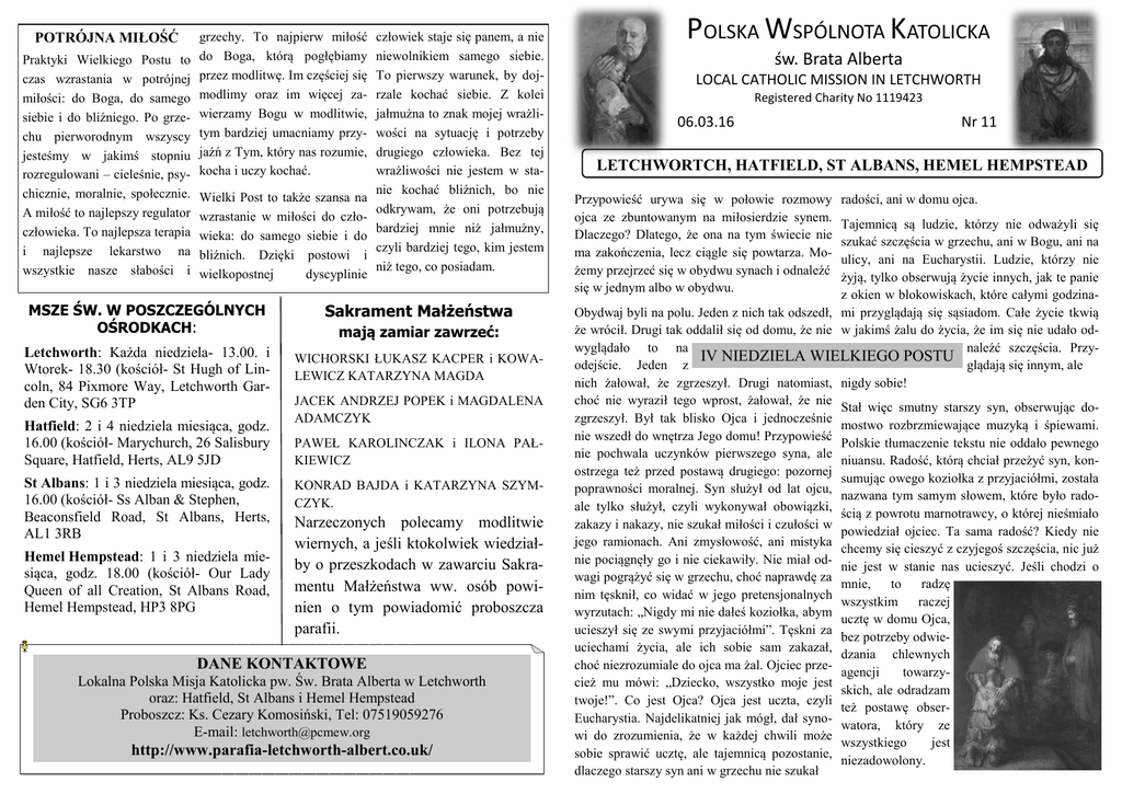 Biuletyn nr 11 z 06.03.2016 - Polska Parafia Św. Brata Alberta w
