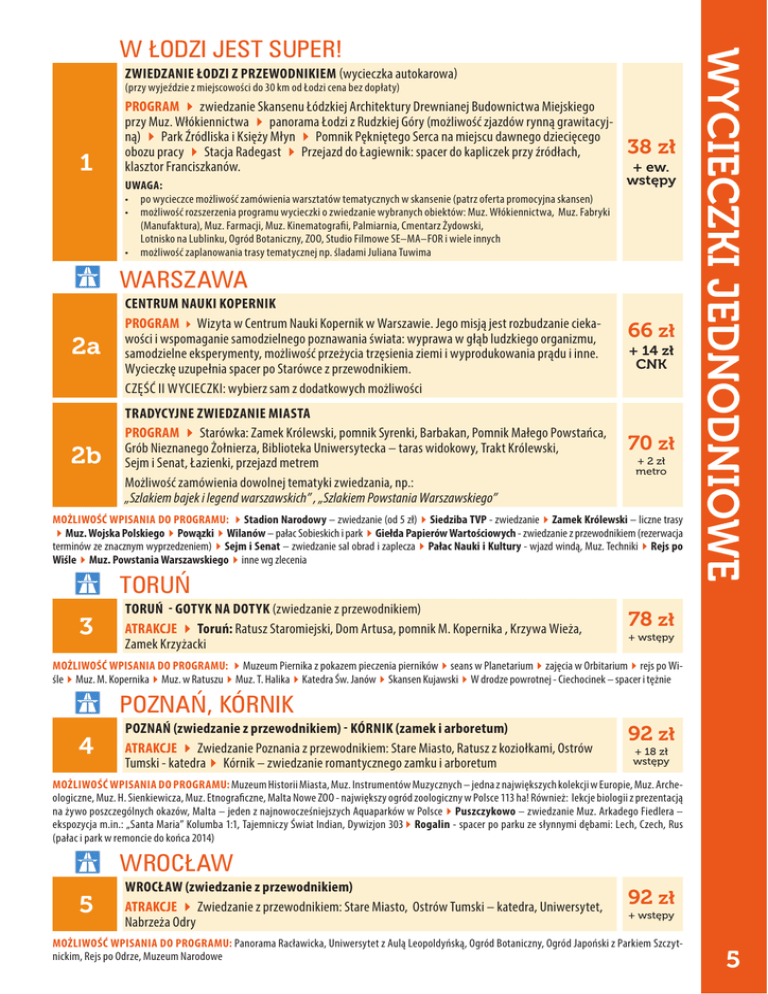 WYCIECZKI JEDNODNIOWE