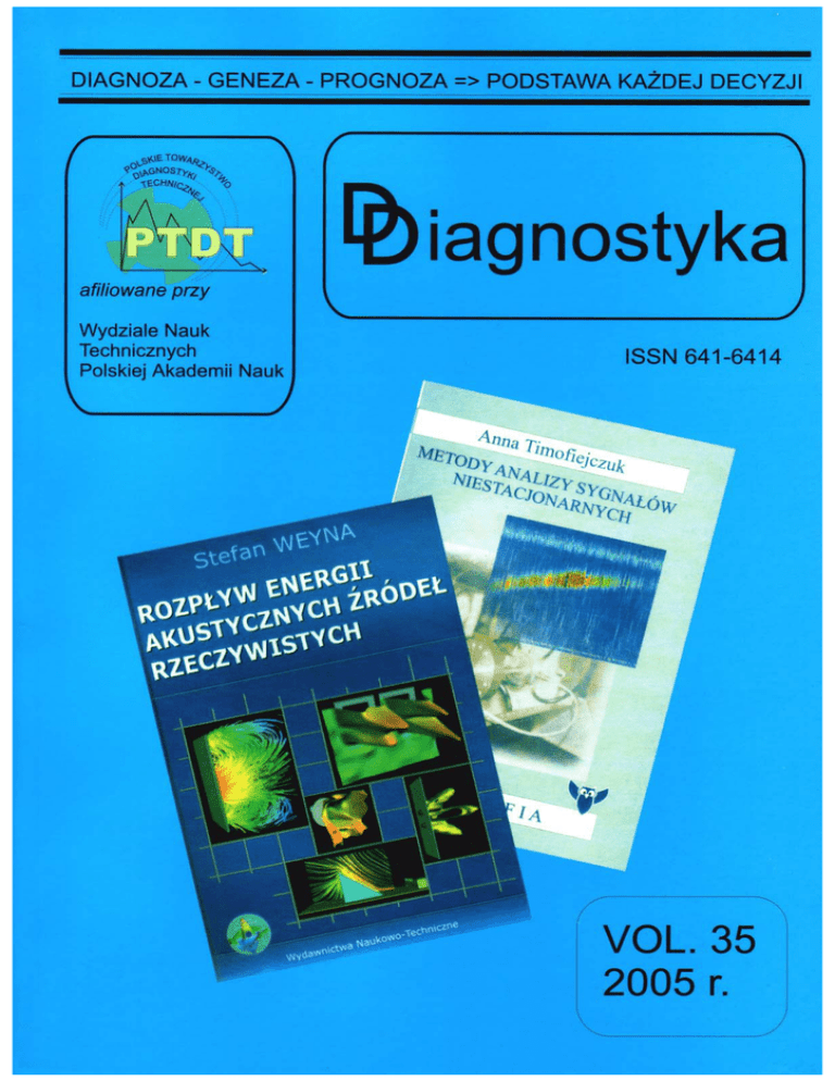 DIAGNOSTYKA’35 – SPIS TREĝCI 3 Spis treĞci SàOWO REDAKTORA INFORMACJE PTDT 5 6 ARTYKUàY GàÓWNE CEMPEL Czesáaw – Politechnika PoznaĔska 7 Rozkáad symptomowej macierzy obserwacji populacji jako pomoc w ocenie jakoĞci wniosków i obiektów SVD Decomposition Of Symptom Observation Matrix As The Help In A Quality Assessment Of A Group Of Applications Adam SOàBUT - Politechnika Biaáostocka 13 MoĪliwoĞci automatycznej oceny stanu ukáadu napĊdowego z maszyną indukcyjną Posibilities Of Automatic State Estimation Of An Inductions Motor Drive Maciej ĝWITALSKI - ATR Bydgoszcz 17 Ocena stanu páaszcza walczaka obrotowego poprzez pomiar dynamicznych ugiĊü waáów rolek noĞnych The State Estimation Of Rotary Drum’s Coat By Measurement Shafts’ Dynamic Deflections Of Support Rollers Andrzej SOBOLEWSKI - Politechnika Biaáostocka 27 Neuronowe klasyfikatory cech sygnaáów w diagnostyce uszkodzeĔ wirnika silnika indukcyjnego Neural Classifiers Of Fault Symptoms In Induction Machinery Rotor Fault Diagnosis Paweá WIRKOWSKI – AMW Gdynia 31 Modelowanie charakterystyki sprĊĪarki osiowej o zmiennej geometrii kanaáu przepáywowego Modelling Of The Characteristic Of Axial Compressors Equipped With Variable Geometry Of Flow Ducts Yevhen KHARCHENKO, Stefan SOBKOWSKI – UWM Olsztyn 37 Modelowanie matematyczne procesów rozruchu ukáadów napĊdowych podnoĞników budowlanych Mathematical Modelling Of Transients In Drives Of Building Elevating Devices Krzysztof MENDROK – AGH Kraków 43 Identyfikacja siá oddziaáywania w ukáadzie koáo szyna metodą odwróconego filtru strukturalnego Load Identification In Wheel Rail System With Use Of Inverse Structural Filter Method Tomasz BARSZCZ – AGH Kraków 49 Koncepcja monitorowania i diagnostyki maszyn wirujących maáej i Ğredniej mocy Concept Of Monitoring And Diagnostics Of Small And Medium Power Rotating Machinery Tadeusz UHL – AGH Kraków, Stefan BERCZYēSKI – Politechnika SzczeciĔska, Artur HANC, àukasz SĉKIEWICZ – Energocontrol sp. z o.o. 57 Rozproszony system monitorowania mostów Distributed System Of Bridges Monitoring Janusz ZACHWIEJA – ATR Bydgoszcz 63 Diagnozowanie wirnika wentylatora poziomego o maáej sztywnoĞci posadowienia Diagnostic Of The Horizontal Ventilator’s Rotor With A Low Setting Stiffness Piotr KUROWSKI, Piotr KOHUT – AGH Kraków 71 Zastosowanie systemu wizyjnego do detekcji i lokalizacji uszkodzeĔ Vision Based System For SHM Application Józef RYBCZYēSKI – IMP GdaĔsk 77 Charakterystyki wybiegowe turbozespoáu wyraĪone kaskadowymi wykresami drgaĔ w obecnoĞci defektu rozosiowania áoĪysk Rundown Characteristics Of The Turbine Set In The Presence Of Bearing’s Dislocation Defect Expressed By Waterfall Vibration Diagrams Tadeusz UHL – AGH Kraków, Adam PIETRZYK – Energocontrol sp z. o.o. 85 Integracja niezawodnoĞci i diagnostyki Reliability And Diagnostic Integration Wawrzyniec PANFIL, Wojciech MOCZULSKI, Ryszard WYCZÓàKOWSKI – Politechnika ĝląska Gliwice 89 Reasoning In Machinery Diagnostics Aided By Augmented Reality System Wnioskowanie w diagnostyce maszyn wspomagane systemem rozszerzonej rzeczywistoĞci Zbigniew DAMIJAN – AGH Kraków 95 Badanie wpáywu dĨwiĊków niskiej czĊstotliwoĞci na poziom aktywnoĞci elektrodermalnej The Effects Of Low-Frequency Sound Exposure On The Level Of Electrodermal Activity Zbigniew DAMIJAN – AGH Kraków 101 Wpáyw drgaĔ niskoczĊstotliwoĞciowych na wybrane parametry fizjologiczne Changes Of Selected Physiological Parameters Under Low Frequency Vibration 4 DIAGNOSTYKA’35 – SPIS TREĝCI Roman BARCZEWSKI – Politechnika PoznaĔska 105 Zastosowanie uĞredniania multisynchronicznego – MSA w diagnostyce silników asynchronicznych Application Of Multisynchronous Averaging - MSA In Asynchronous Electric Motor Diagnostics Roman BARCZEWSKI – Politechnika PoznaĔska 113 Ocena stanu naprĊĪenia i spójnoĞci belki Īelbetowej na podstawie zmian ksztaátu krzywej szkieletowej Stress Assessment And Integrity Loss Detection Of A Ferroconcrete Beam On The Basis Of Backbone Curve Changes Andrzej GRZĄDZIELA – AMW Gdynia 119 Analiza parametrów drganiowych okrĊtowych turbinowych silników spalinowych Analysis Of Vibration Parameters Of Marine Gas Turbine Engines Marek IWANIEC – AGH Kraków 125 Diagnostyka rozwarstwieĔ koáowych powstających w strukturze wewnĊtrznej fresków Diagnostics Of Circular Delaminations In Frescos Structure Wojciech POPRAWSKI – Politechnika Wrocáawska 131 Monitorowanie stanu amortyzatorów kolejowych Condition Monitoring Of Railway Shock Absorbers Kazimierz WITKOWSKI – AM Gdynia 137 Wykorzystanie parametrów drgaĔ wzdáuĪnych tulei cylindrowych w diagnostyce okrĊtowych táokowych silników spalinowych The Use Of The Parameters Of Cylinder Liner Longitudinal Vibrations In Marine Diesel Engines Diagnostics WARTO PRZECZYTAû Rozpáyw energii akustycznych Ĩródeá rzeczywistych – STEFAN WEYNA Metody analizy sygnaáów niestacjonarnych – ANNA TIMOFIEJCZUK 145 145 INFORMACJE BAZA DANYCH O ZAWARTOĝCI POLSKICH CZASOPISM TECHNICZNYCH (BAZTECH) 146 KONFERENCJE IMEKO TC10 INTERNATIONAL CONFERENCE ON TECHNICAL DIAGNOSTICS XXXIII OGÓLNOPOLSKIE SYMPOZJUM DIAGNOSTYKA MASZYN 147 148 DIAGNOSTYKA’35 Sáowo Przewodniczącego Rady Naukowej DIAGNOSTYKI Drodzy Czytelnicy naszego czasopisma naukowo - technicznego DIAGNOSTYKA Drodzy Autorzy, Koledzy wspóápracowaü; Polskiego Towarzystwa Diagnostyki Technicznej (PTDT) i szósty rok czasopisma DIAGNOSTYKA. Czasopismo to, dziĊki pracy Redakcji pod wodzą prof. Ryszarda MICHALSKIEGO okrzepáo i utrwaliáo swoją pozycjĊ na rynku, zdobywając równieĪ dobre miejsce na listach dawnego Komitetu BadaĔ Naukowych. Nastąpiá wiĊc stosowny moment do inernacjonalizacji jego oddziaáywania. Operacyjnie Menad SIDAHMED z Universiy of Technology Compiegne – Francja, Prof. Raj B.K.N. Rao President COMADEM International Mija juĪ 15 rok istnienia naszego towarzystwa p