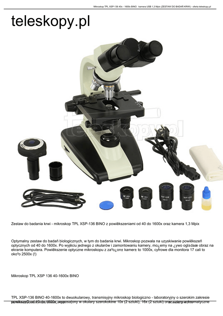 Mikroskop TPL XSP-136 40x - 1600x BINO kamera USB 1,3 Mpix