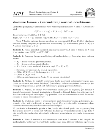 Zadanie 1. Podaj przykład zależnych zmiennych losowych X oraz Y takich, że X oraz