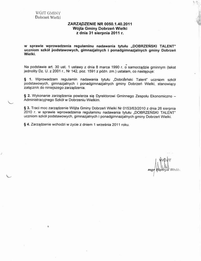 \\IT]JT GMIi.IY Dobrzeń Wjejki zARzĄDzENlE NR 0050.1 .40.20