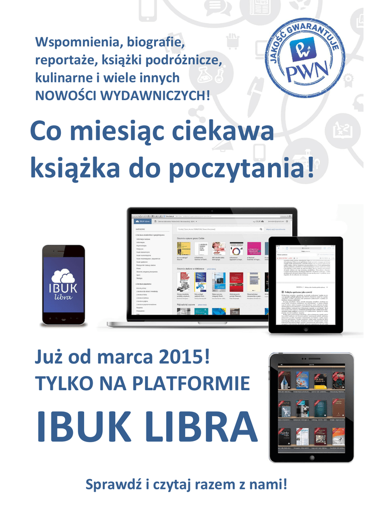 Wspomnienia, biografie, reportaże, książki podróżnicze, kulinarne i wiele innych NOWOŚCI WYDAWNICZYCH! Co miesiąc ciekawa książka do poczytania! Już od marca 2015! TYLKO NA PLATFORMIE IBUK LIBRA Sprawdź i czytaj razem z nami!
