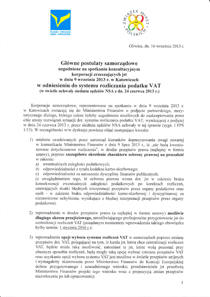 w Katowicach zlvracają się do Ministerstwa Finansów o podjęcie partnerskiego, merytorycznego dialogu, którego celem byłoby uzgodnienie moŹliwych do zaakceptowania przez