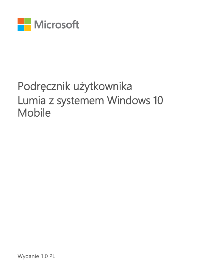 Podręcznik użytkownika Lumia z systemem Windows 10 Mobile Wydanie 1.0 PL Instrukcja obsługi — informacje Ta instrukcja obsługi dotyczy instrukcji dla oprogramowania. Ważne: Przed rozpoczęciem użytkowania sprzętu zapoznaj się ważnymi informacjami na temat bezpiecznego korzystania z urządzenia i baterii znajdującymi się w dokumentach „Dla własnego bezpieczeństwa” oraz „Informacje dotyczące produktu i bezpieczeństwa”, dostępnymi w formie drukowanej, podręczniku użytkownika w urządzeniu i na stronie www.microsoft.com/mobile/support. Aby dowiedzieć się jak zacząć korzystać z nowego urządzenia, zapoznaj się z instrukcją użytkownika w formie drukowanej. Aby znaleźć internetowy podręcznik użytkownika, filmy instruktażowe, dodatkowe informacje i pomoc w rozwiązywaniu problemów, przejdź na stronę support.microsoft.com, a następnie do instrukcji dotyczących telefonów z systemem Windows Phone. Możesz obejrzeć filmy pomocy technicznej na stronie www.youtube.com/lumiasupport. W telefonie znajduje się ponadto podręcznik użytkownika — masz go zawsze pod ręką. Aby znaleźć odpowiedzi na różne pytania i zapoznać się z przydatnymi wskazówkami, dotknij Lumia Pomoc i wskazówki. Jeśli jesteś nowym użytkownikiem telefonu Lumia, zapoznaj się z sekcją dla nowych użytkowników. © 2015 Microsoft Mobile. Wszelkie prawa zastrzeżone. 2 Podręcznik użytkownika Lumia z systemem Windows 10 Mobile Spis treści Dla własnego bezpieczeństwa 5 Kontakty i wiadomości 63 Pierwsze kroki 6 Połączenia 63 Włączanie telefonu 6 Kontakty 67 Blokowanie klawiszy i ekranu 7 Sieci społecznościowe 72 Ładowanie telefonu 7 Wiadomości 73 Twój pierwszy telefon Lumia? 11 Poczta 77 Dowiedz się więcej o swoim telefonie 11 Aparat 83 Konfigurowanie telefonu 11 Szybkie otwieranie aparatu 83 Poznaj kafelki, aplikacje i ustawienia 12 Aparat — podstawowe informacje 83 Nawigacja wewnątrz aplikacji 15 Korzystanie z ekranu dotykowego 16 Zaawansowane funkcje fotografowania 86 Klawisze Wstecz, Start i Szukaj 19 Zdjęcia i filmy 87 Mapy i nawigacja 90 Przenoszenie zawartości do telefonu Lumia 19 Włączanie usług lokalizacyjnych 90 Podstawowe informacje 23 Znajdowanie lokalizacji 90 Co nowego w tej wersji? 23 Zapoznaj się z funkcjami telefonu 23 Uzyskiwanie wskazówek dojazdu do określonego miejsca 91 Konta 31 Pobieranie mapy do telefonu 91 Personalizowanie telefonu 36 Dostępność 42 Wykonywanie zrzutu ekranu 44 Wydłużanie czasu pracy baterii 44 Oszczędzaj na kosztach roamingu transmisji danych 47 Wpisywanie tekstu 47 Zegar i kalendarz 52 Dwie karty SIM 56 Przeglądanie aplikacji na karcie SIM 58 Sklep 59 © 2015 Microsoft Mobile. Wszelkie prawa zastrzeżone. Metody ustalania pozycji 92 Internet 93 Definiowanie połączeń internetowych 93 Łączenie komputera z internetem 93 Efektywne wykorzystanie planu taryfowego 94 Przeglądarka internetowa 94 Wyszukiwanie w internecie 97 Zamykanie połączeń internetowych 97 Rozwiązywanie problemów z połączeniem internetowym 97 3 Rozrywka 99 Oglądanie i słuchanie 99 Radio 102 Synchronizowanie muzyki i filmów między telefonem a komputerem 103 Gry 104 Aplikacje lifestylowe i usługi 107 Biuro 109 Praca z aplikacją Word 109 Praca z aplikacją Excel 110 Praca z aplikacją PowerPoint 111 Pisanie notatki w programie OneNote 112 Korzystaj z telefonu jak z komputera przy użyciu funkcji Continuum 112 Podłączanie urządzeń przy użyciu funkcji Continuum 113 Praca z funkcją Continuum 113 Używanie kalkulatora 114 Zarządzanie telefonem i łączność 115 Aktualizowanie oprogramowania telefonu 115 Korzystanie z bezpiecznego połączenia VPN 116 Wi-Fi 116 NFC 117 Bluetooth 119 Pamięć i przechowywanie 121 Kopiowanie materiałów między telefonem a komputerem 125 Zabezpieczenia 127 Portfel 133 Kody dostępu 133 Rozwiązywanie problemów z łącznością 134 © 2015 Microsoft Mobile. Wszelkie prawa zastrzeżone. Jeśli telefon nie odpowiada 136 4 Dla własnego bezpieczeństwa Zapoznaj się uważnie z podanymi tu prostymi wskazówkami. Nieprzestrzeganie tych wskazówek może być niebezpieczne lub niezgodne z lokalnie obowiązującymi przepisami. PRZESTRZEGAJ NAKAZÓW WYŁĄCZANIA URZĄDZEŃ Urządzenie należy wyłączyć tam, gdzie używanie telefonów komórkowych jest niedozwolone bądź może powodować zakłócenia i niebezpieczeństwo, na przykład w samolocie, w szpitalu, w pobliżu sprzętu medycznego, paliw, chemikaliów lub w miejscach, w których odpalane są ładunki wybuchowe. Stosuj się do wszystkich instrukcji w obszarach o ograniczonym dostępie. NAJWAŻNIEJSZE JEST BEZPIECZEŃSTWO W RUCHU DROGOWYM Stosuj się do wszystkich lokalnie obowiązujących przepisów. Prowadząc samochód, nie zajmuj rąk niczym innym. W trakcie jazdy miej przede wszystkim na uwadze bezpieczeństwo na drodze. ZAKŁÓCENIA Wszystkie urządzenia bezprzewodowe mogą być podatne na zakłócenia, które z kolei mogą wpływać na jakość połączeń. PROFESJONALNY SERWIS Instalować i naprawiać ten produkt może wyłącznie wykwalifikowany personel. BATERIE, ŁADOWARKI I INNE AKCESORIA Korzystaj wyłącznie z baterii, ładowarek i innych akcesoriów zatwierdzonych przez firmę Microsoft Mobile do użytku z urządzeniem. Ładowarki innych firm zgodne z odpowiednimi wymaganiami dotyczącymi USB, i które można podłączyć do portu USB w urządzeniu, mogą także być kompatybilne. Nie podłączaj niekompatybilnych produktów. DBAJ O TO, BY URZĄDZENIE BYŁO SUCHE To urządzenie nie jest wodoodporne. Chroń je przed wilgocią. CZĘŚCI SZKLANE Ekran urządzenia zrobiony jest ze szkła. To szkło może się stłuc, jeśli urządzenie spadnie na twardą powierzchnię lub gdy zostanie mocno uderzone. Jeśli to szkło się stłucze, nie dotykaj szklanych części urządzenia i nie próbuj wyjmować odłamków szkła z urządzenia. Nie używaj urządzenia, zanim wykwalifikowany pracownik serwisu nie wstawi nowego szkła. CHROŃ SŁ
