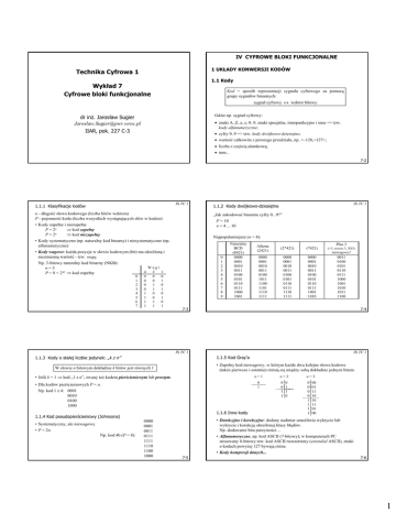 Technika Cyfrowa 1 Wykład 7 Cyfrowe bloki funkcjonalne