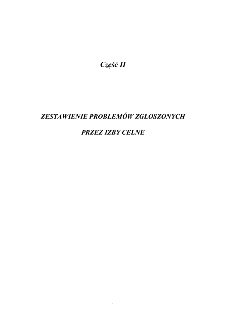 Część II ZESTAWIENIE PROBLEMÓW ZGŁOSZONYCH PRZEZ IZBY CELNE 1 1. Czy obecna wewnętrzna struktura organizacyjna izby celnej i urzędu celnego sprzyja prawidłowej realizacji zadań? Uwagi zgłaszane w związku z udzieleniem odpowiedzi negatywnej: 1. Należy wypracować model podziału zadań kontrolnych pomiędzy izbą i urzędami celnymi. Obecnie obydwa poziomy mają podobne obowiązki wynikające z ustawy o Służbie Celnej zaś wyraźnie różne narzędzia do ich realizacji. Stąd też niektóre elementy aparatu kontrolnego, dziś działającego w izbach, powinny zostać przeniesione na poziom urzędów. Dotyczy to: - zadań kontrolnych szczególnego nadzoru podatkowego, - grup mobilnych, które byłyby nadzorowane przez komórkę organizacyjną w izbie celnej; 2. Należałoby rozważyć możliwość wyłączenia komórek szczególnego nadzoru podatkowego spod nadzoru komórki nadzoru i koordynacji kontroli przedsiębiorców w izbie celnej. Zadania szczególnego nadzoru podatkowego na poziomie izby celnej powinna realizować komórka podatku akcyzowego; 3. Powinno się przekazać całość czynności kontrolnych (zwalczanie przestępczości celnej) do organów I instancji, czyli naczelnikom uc z pozostawieniem w ic koordynacji i nadzoru działań kontrolnych oraz struktur specjalnych takich jak wywiad celny; 4. Wskazane byłoby utworzenie jednej komórki kontroli wewnętrznej z uwagi na dublowanie się zadań komórki kontroli wewnętrznej i audytu wewnętrznego; 5. W strukturze urzędów celnych powinno się umieścić komórki obsługi prawnej i stanowisko radcy prawnego. Obsługa prawna zapewniana z poziomu izby celnej przy rozszerzających się zadaniach urzędu celnego i skomplikowanym charakterze decyzji, zwłaszcza w zakresie podatku akcyzowego jest niewystarczająca; 6. Powinna nastąpić decentralizacja zadań w zakresie egzekucji administracyjnej - w ramach obecnej struktury organizacyjnej istnieje możliwość przekazania uprawnień organów egzekucyjnych naczelnikom urzędów celnych. Przy zachowaniu funkcji wierzyciela przez dyrektora izby celnej, prowadzenie na jego zlecenie egzekucji administracyjnej przez naczelników uc pozwoliłoby na wykorzystanie terenowych struktur do prowadzenie czynności egzekucyjnych. Prowadzenie egzekucji przez jeden organ egzekucyjny na terenie obszaru województwa jest nieefektywne i wymagające ponoszenia dużych wydatków egzekucyjnych; 7. Słusznym byłoby rozważenie możliwości tworzenia w urzędach celnych komórek analizy ryzyka; 8. Komórki prawno-organizacyjne powinny być rozdzielone na dwie odrębne komórki: prawną i organizacyjną – z uwagi na odmienny charakter i specyfikę zadań obu komórek; 9. W izbie celnej powinny być utworzone komórki nadzorującej szczególny nadzór podatkowy; 10. Istnieje potrzeba powołania komórek służby wewnętrznej; 11. Powinno dążyć się do usamodzielnienia urzędów celnych w zakresie finansowym, logistycznym i kadrowym. Naczelnik urzędu celnego jako organ administracji państwowej I instancji powinien mieć większy wpływ na funkcjonowanie podległego mu urzędu; 12. Należy rozszerzyć uprawnienia dyrektora izby celnej w zakresie zmiany struktury organizacyjnej izby. Dyrektor izby celnej powinien mieć, w uzasadnionych przypadkach i po uprzednim poinformowaniu Ministerstwa, możliwość tworzenia, łączenia lub dzielenia komórek organizacyjnych izby bez konieczności każdorazowego uzyskiwania zgody Ministra Finansów; 2 Postulaty dotyczące konkretnych przypadków: 1. Zamiast Oddziału Celnego Port Lotniczy w Katowicach - Pyrzowicach należałoby utworzyć Oddział Celny Port Lotniczy – Osobowy i Oddział Celny Port Lotniczy - Towarowy. Rozdzielenie jest konieczne, bowiem Port Lotniczy w Pyrzowicach staje się jednym z najszybciej rozwijających się i obecnie trwa jego rozbudowa, po zakończeniu której port cargo będzie oddalony o kilka kilometrów od portu pasażerskiego, co fizycznie uniemożliwia wykonywanie kontroli w jednym oddziale; 2. W Izbie Celnej w Krakowie powinny zostać utworzone: a) komórka statystyczna – realizująca zadania o charakterze ogólnopolskim, związane z obsługą warstwy analitycznej podsystemu INTRASTAT. W strukturze Izby Celnej w Krakowie funkcjonuje Wydział INTRASTAT, którego rola i przypisane zadania nie odpowiadają zakresowi przewidzianemu dla komórek przyjmujących i weryfikujących deklaracje INTRASTAT w izbach celnych. W chwili obecnej Wydział sprawuje administrację merytoryczną podsystemu INTRASTAT oraz realizuje zadania związane z obsługą warstwy analitycznej systemu (zadania na poziomie ogólnopolskim) . Zadania związane z ogólnopolską analityką INTRASTAT oraz tworzeniem i obsługą systemu porównywania danych INTRASTAT/VAT, jak również prowadzenie badań cenowych we współpracy z ekspertami z Głównego Urzędu Statystycznego, stanowią odrębny obszar zadaniowo-organizacyjny, który powinien zostać wyodrębniony w strukturze organizacyjnej, ze względu na specyficzny zakres kompetencji i odpowiedzialności. Komórka statystyki byłaby odpowiedzialna za kontakty z Głównym Urzędem Statystycznym oraz generowanie zbiorów statystyki handlu zagranicznego RP, przekazywanych przez GUS do EUROSTAT. Do zadań komórki należałoby: - opracowywanie i testowanie widełek wagowo-cenowych, - analiza i weryfikacja danych z hurtowni VAT, KEP i REGON oraz przygotowywanie plików VAT, KEP i REGON przeznaczonych do wgrania na bazę centralną, - budowa dodatkowych modułów analitycznych dla wydziałów INTRASTAT z wykorzystaniem technologii OLAP i ASP.NET oraz administrowanie tymi modułami, - inne zadania wynikające ze współpracy i wykonywania zadań dla potrzeb administracji merytorycznej i Projektu, - kontrola funkcjonowania analityki okresów sprawozdawczych – w szczególności kontrola procesów zachodzących na serwerze analitycznym, dotyczących obliczania kategorii i priorytetów, poprawności i kompletno