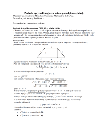Zadania optymalizacyjne w szkole ponadgimnazjalnej.