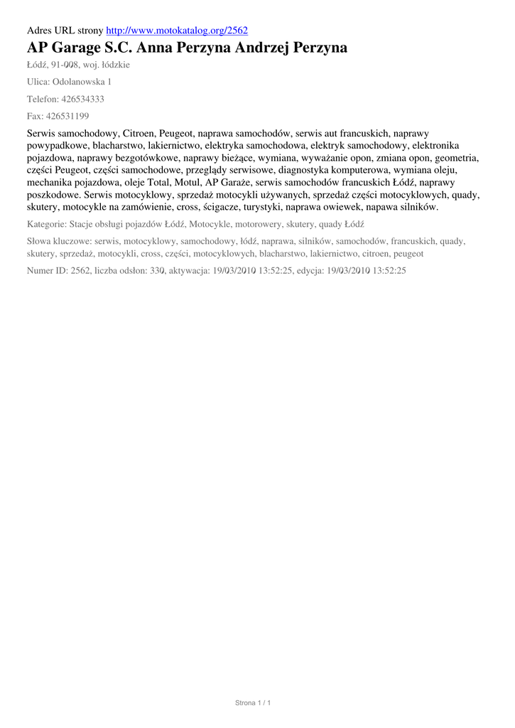 AP Garage S.C. Anna Perzyna Andrzej Perzyna, Lodz, Odolanowska 1