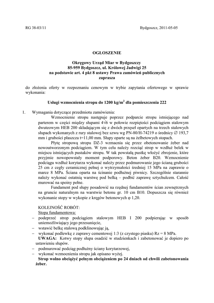 wzmocnienie stropu 2011 og³oszenie