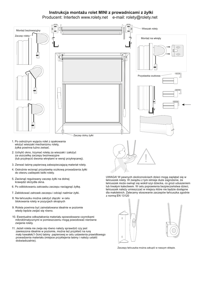 Instrukcja montażu rolet MINI z prowadnicami z żyłki Producent