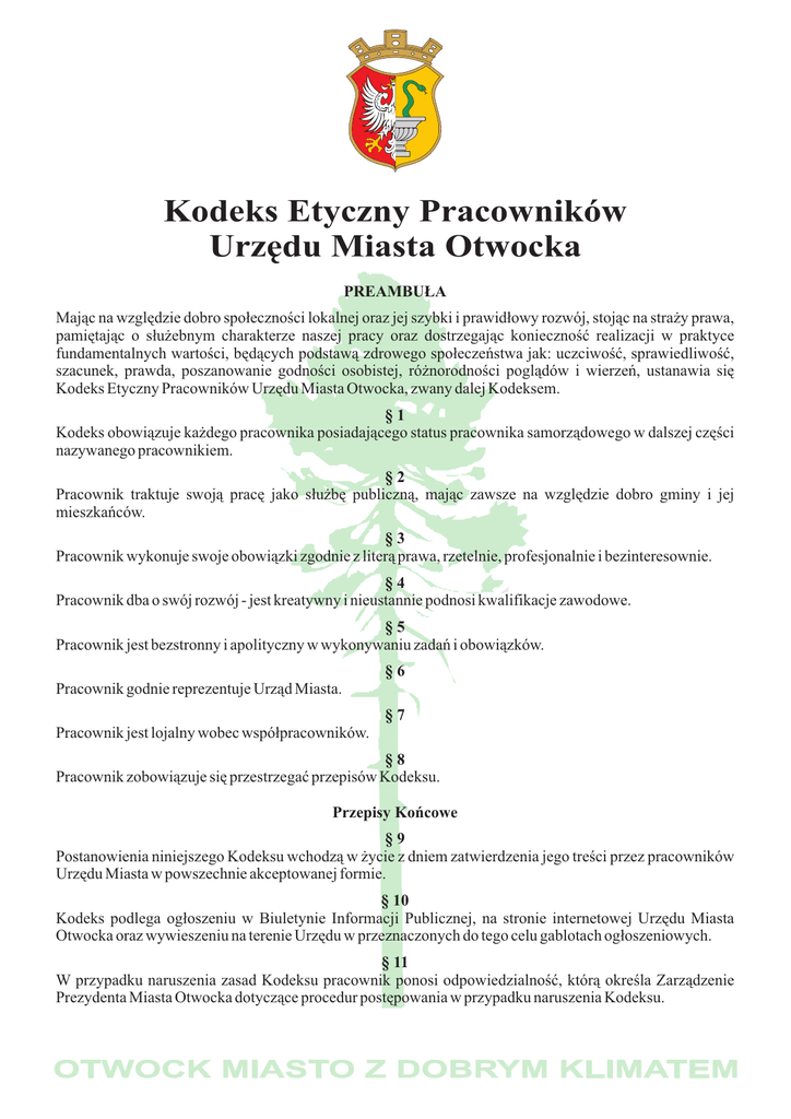 Kodeks Etyczny Pracowników Urzędu Miasta Otwocka