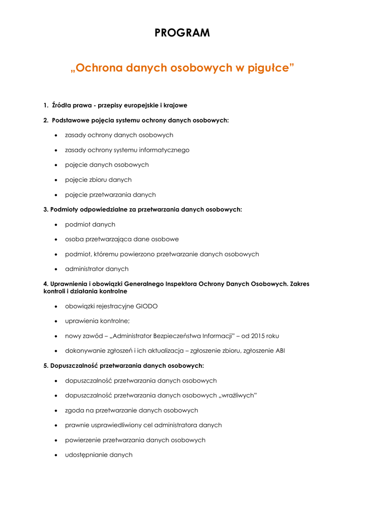PROGRAM „Ochrona danych osobowych w pigułce”
