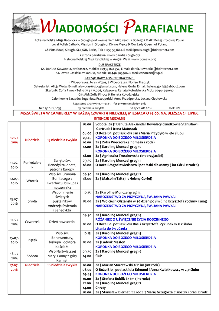 Wiadomości Parafialne - Lokalna Polska Misja Katolicka w Slough