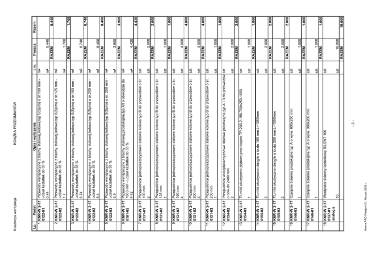 Kosztorys wentylacja KSIĄŻKA PRZEDMIARÓW Lp. Podst Opis i