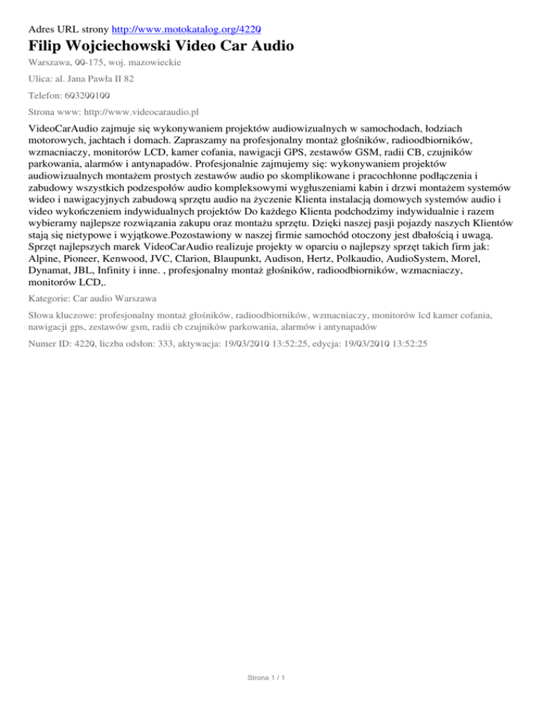 Filip Wojciechowski Video Car Audio, Warszawa, al. Jana Pawla II 82