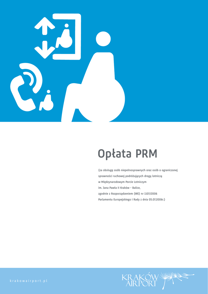 Opłata PRM (za obsługę osób niepełnosprawnych oraz osób o ograniczonej sprawności ruchowej podróżujących drogą lotniczą w Międzynarodowym Porcie Lotniczym im. Jana Pawła II Kraków – Balice, zgodnie z Rozporządzeniem (WE) nr 1107/2006 Parlamentu Europejskiego i Rady z dnia 05.07.2006r.) krakowairport.pl (za obsługę osób niepełnosprawnych oraz osób o ograniczonej sprawności ruchowej Opłata PRM podróżujących drogą lotniczą w Międzynarodowym Porcie Lotniczym im. Jana Pawła II Kraków – Balice, zgodnie z Rozporządzeniem (WE) nr 1107/2006 Parlamentu Europejskiego i Rady z dnia 05.07.2006r.) Rozporządzenie (WE) nr 1107/2006 Parlamentu Europejskiego i Rady z dnia 05.07.2006 r., nakłada na zarządzającego portem lotniczym obowiązek wprowadzenia zasad ochrony i udzielania pomocy osobom niepełnosprawnym oraz osobom o ograniczonej sprawności ruchowej, podróżujących drogą lotniczą, zarówno w celu zapewnienia im ochrony przed dyskryminacją, jak i w celu zapewnienia niezbędnej pomocy na terenie portu lotniczego. W celu spełnienia obowiązku, jakie na zarządzającego portem nakłada ww. Rozporządzenie, Zarząd Międzynarodowego Portu Lotniczego im. Jana Pawła II Kraków-Balice Sp. z o.o. zawarł umowę, a tym samym zlecił realizację wspomnianego wyżej obowiązku agentowi handlingowemu WELCOME Airport Services Sp. z o.o. Wybór firmy został dokonany w oparciu o wynik postępowania MPL/BS/SZ/241/1/86/13, przeprowadzonego na podstawie § 22 „Regulaminu udzielania zamówień publicznych MPL” oraz zgodnie z Uchwałą nr 39/135/13 Zarządu Międzynarodowego Portu Lotniczego im. Jana Pawła II KrakówBalice Sp. z o.o. z dnia 29 listopada 2013r. W związku z powyższym zarządzający Międzynarodowym Portem Lotniczym im. Jana Pawła II Kraków-Balice przejmuje odpowiedzialność za zapewnienie udzielenia osobom niepełnosprawnym i osobom o ograniczonej sprawności ruchowej, bez dodatkowych opłat, pomocy określonej w załączniku 1 do ww. Rozporządzenia. Rozporządzenie stanowi, iż pomoc powinna być finansowana w taki sposób, aby sprawiedliwie rozłożyć ciężar na wszystkich pasażerów korzystających z portu lotniczego. Organ zarządzający portem lotniczym może, na zasadzie braku dyskryminacji, nałożyć specjalną opłatę na użytkowników portu lotniczego w celu sfinansowania tej pomocy. Opłata ta jest dzielona pomiędzy użytkowników portu lotniczego proporcjonalnie do całkowitej liczby wszystkich pasażerów, jaką każdy z nich przewozi do i z tego portu lotniczego. Międzynarodowy Port Lotniczy im. Jana Pawła II Kraków-Balice Sp. z o.o., działając na podstawie art. 8 ust. 3 ww. Rozporządzenia, wprowadza Opłatę PRM, która będzie pobierana od wszystkich przewoźników lotniczych. Wysokość tej opłaty jest powiązana z kosztami obsługi osób niepełnosprawnych oraz osób o ograniczonej sprawności ruchowej podróżujących drogą lotniczą, przejrzysta oraz nie służy finansowaniu działalności organu zarządzającego. krakowairport.pl Wysokość Opłaty PRM w Międzynarodowym Porcie Lotniczym im. Jana Pawła II Kraków-Balice została ustalona na poziomie 0,49 PLN za każdego odlatującego pasażera. Opłata ta obowiązuje od dnia 1 stycznia 2014 r. Powyższej opłacie nie podlegają pasażerowie wskazani w pkt. 5 ust. 2 taryfy opłat lotniskowych w Międzynarodowym Porcie Lotniczym im. Jana Pawła II KrakówBalice. Opłata PRM będzie weryfikowana na koniec każdego roku kalendarzowego. Różnice pomiędzy założonymi kosztami, a kosztami rzeczywistymi obsługi osób niepełnosprawnych oraz osób o ograniczonej sprawności ruchowej podróżujących drogą lotniczą będą uwzględnianie w opłacie PRM na kolejny rok kalendarzowy. W odniesieniu do rozliczania Opłat PRM ma zastosowanie pkt. 2 taryfy opłat lotniskowych w Międzynarodowym Porcie Lotniczym im. Jana Pawła II Kraków-Balice. Aby zapewnić możliwie najwyższe standardy świadczonych usług w zakresie obsługi osób niepełnosprawnych oraz osób o ograniczonej sprawności ruchowej podróżujących drogą lotniczą we współpracy z Komitetem Przewoźników Lotniczych w Krakowie (AOC KRK) został przygotowany i zaakceptowany „Kodeks dobrego postępowania przy obsłudze osób z ograniczoną możliwością poruszania się – Kraków Airport” (pełny tekst do pobrania). Niniejszy dokument został stworzony w oparciu o: Rozporządzenie (WE) nr 1107/2006 Parlamentu Europejskiego i Rady z dnia 05.07.2006 r. (pełny tekst do pobrania)