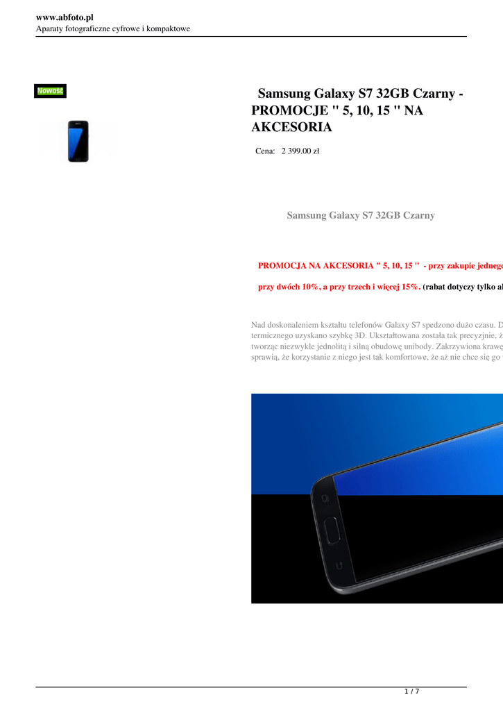 www.abfoto.pl Aparaty fotograficzne cyfrowe i kompaktowe Samsung Galaxy S7 32GB Czarny PROMOCJE " 5, 10, 15 " NA AKCESORIA Cena: 2 399.00 zł Samsung Galaxy S7 32GB Czarny PROMOCJA NA AKCESORIA " 5, 10, 15 " - przy zakupie jednego przy dwóch 10%, a przy trzech i więcej 15%. (rabat dotyczy tylko ak Nad doskonaleniem kształtu telefonów Galaxy S7 spedzono dużo czasu. D termicznego uzyskano szybkę 3D. Ukształtowana została tak precyzjnie, ż tworząc niezwykle jednolitą i silną obudowę unibody. Zakrzywiona krawę sprawią, że korzystanie z niego jest tak komfortowe, że aż nie chce się go w 1/7 www.abfoto.pl Aparaty fotograficzne cyfrowe i kompaktowe Zdjęcia zawsze wyraziste i pełne życia Słabe oświetlenie nie powinno przeszkadzać Ci w uwiecznianiu najlepszyc rozwiązania dbają o jakość zdjęć. Najlepsze zdjęcia wymagają szybkiej rea Samsung technologia Dual PIXEL pozwala na precyzyjny pomiar i szybsz oświetleniowych. Wszystkie piksele na sensorze obrazu posiadają dwie fot Sensor może skupić się tak szybko i tak dokładnie jak ludzkie oko. Wiele z życiu dzieje się przy słabym oświetleniu. Jaśniejszy obiektyw F1.7 i duży r światła. Dzięki czemu zdjęcia wykonane Galaxy S7 są ostre i wyraźne naw Zapierająca dech prędkość i moc Nowy procesor i 4 GB RAM to zestaw o wielkich możliwościach. Od uruc filmów, wszystko co będziesz robił, zachwyci płynnością działania. Dzięki oprogramowaniu, nawet najbardziej zaawansowane gry imponują wydajno Launcher” i „Game Tools”, pozwalają się skupić na grze, bez rozpraszania funkcji oszczędzania energii w Game Tools, możesz grać dłużej przy mnie 2/7 www.abfoto.pl Aparaty fotograficzne cyfrowe i kompaktowe Wyświetlacz 5.1 WQHD Super AMOLED Samsung Galaxy S7 został wyposażony w duży 5.1 – calowy wyświetlacz nieskazitelną ostrością obrazu. Precyzyjne nasycenie kolorów oraz wysoki wysoka rozdzielczość przekłada się na wspaniałe wrażenia wizualne. Inteli wyświetlanego obrazu do otoczenia w którym się znajdujesz. 3/7 www.abfoto.pl Aparaty fotograficzne cyfrowe i kompaktowe Odporność na wodę i kurz Dzięki uważnie dobranym materiałom najwyższej jakości uszczelniliśmy w temu gniazda USB i słuchawkowe mogą być otwarte. Koniec z gumowym pancerne szkło Corning Gorilla Glass 4 zabezpieczające ekran sprawi, że n ani dla Ciebie ani dla urządzenia. Nie musisz się obawiać zachlapania ani z 4/7 www.abfoto.pl Aparaty fotograficzne cyfrowe i kompaktowe Wielkie możliwości rozszerzania pamięci Obsługa kart microSD pozwala rozszerzyć pamięć, zgodnie z Twoimi potr czy filmów przez długi czas. 5/7 www.abfoto.pl Aparaty fotograficzne cyfrowe i kompaktowe Rewolucja gier mobilnych Nawet najbardziej zaawansowane graficznie gry działają teraz jeszcze płyn zużyciu energii. Gdy akcja nabiera tempa, telefon nie nagrzewa się tak łatw to pierwszy smartfon używający nowej technologii Vulkan API, która znac Game launcher - Najlepsze centrum sterowania grami. Wszystkie tytuły są automatycznie dodawane. Przed rozpoczęciem gry możesz wyciszyć i ukry energię. Game tools - Zyskaj dostęp do atrakcyjnych funkcji poprawiających komfo dzielić się osiągnięciami i zwycięstwami z całym światem. Procesor Samsung Exynos 8890 (4 rdzenie, 2.3 GHz, ARMv Układ graficzny Pamięć RAM Mali-T880 MP12 4 GB Pamięć wbudowana Typ ekranu 32 GB Pojemnościowy, 5-punktowy, Super AMOLED Przekątna ekranu 5,1" 6/7 www.abfoto.pl Aparaty fotograficzne cyfrowe i kompaktowe Rozdzielczość ekranu Łączność 2560 x 1440 Bluetooth Wi-Fi 4G (LTE) System nawigacji satelitarnej Złącza A-GPS, GLONASS Micro USB - 1 szt. Czytnik kart pamięci - 1 szt. Wyjście słuchawkowe/głośnikowe - 1 szt. Gniazdo kart nanoSIM - 1 szt. Bateria Litowo-jonowa 3000 mAh Zainstalowany system operacyjny Aparat Android 6.0 Marshmallow 5.0 Mpix - przód 12.0 Mpix - tył Lampa błyskowa Wbudowana Rozdzielczość nagrywania wideo 3840 × 2160 (4K) Grubość 6,9 mm Szerokość 70,8 mm Wysokość 143,5 mm Kolor Czarny Dodatkowe informacje Magnetometr Szkło Corning Gorilla Glass 4 Funkcja szybkiego ładowania Funkcja ładowania bezprzewodowego Pulsometr Barometr Czujnik zbliżenia Funkcja latarki Czytnik linii papilarnych Czujnik światła Żyroskop Akcelerometr Pyłoszczelność i wodoszczelność (IP68) 7/7 Powered by TCPDF (www.tcpdf.org)