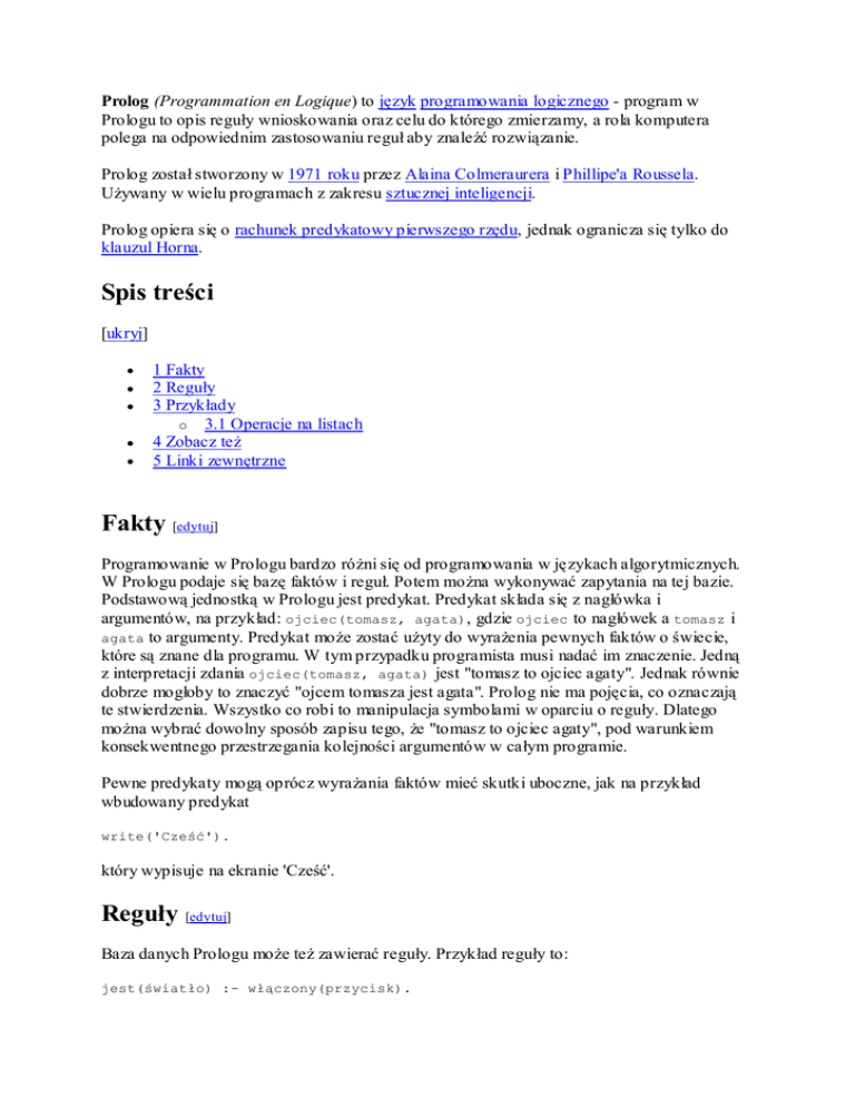 Spis treści Fakty [edytuj] Reguły [edytuj]