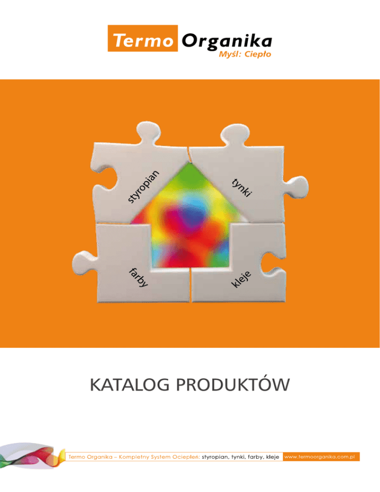 KATALOG PRODUKTÓW Spis treści: str. 1. O firmie 3 2. Dlaczego warto wybrać produkty Termo Organika 4 3. Gdzie stosować produkty Termo Organika 6 4. Wymagania prawne ochrony cieplnej i pożarowej budynków 7-8 4.1 Ochrona cieplna budynków 7 4.2 Bezpieczeństwo pożarowe 8 5. Produkty: 9-45 5.1. Izolacje: 9-22 5.1.1 Styropian EPS 10 5.1.2 PIR 19 5.1.3 XPS 22 5.2. System ociepleń: 23-38 5.2.1 Fasadowe płyty styropianowe 25 5.2.2 Zaprawy klejące 26 5.2.3 Grunty 28 5.2.4 Tynki 29 5.2.5 Farby 31 5.2.6 Materiały uzupełniające 32 5.2.7 Nowa paleta barw 34 5.2.8 Tabela dopłat do barwienia mas tynkarskich i farb 35 5.2.9 Kolekcja melanży tynku dekoracyjnego 38 5.3. Zaprawy klejące do płytek 5.4. Dokumenty dopuszczające wyroby Termo Organika do obrotu i stosowania 5.5. Farby wewnętrzne 39-41 42 43-45 6. Przykładowe realizacje Termo Organika 46 7. Nagrody i wyróżnienia dla produktów Termo Organika 47 8. E-termonawigacja – jak oszacować ilość niezbędnych materiałów do wykonania ETICS 47 9. Kontakt: 48 9.1. Dane firmy 48 9.2. Mapa zakładów produkcyjnych 48 9.3. Sprzedaż 48 9.4. Doradztwo techniczne 48 3 1. O firmie Jakość produktów Termo Organiki Termo Organika to jeden z największych producentów płyt styropianowych w Unii Europejskiej oraz niekwestionowany lider na polskim rynku. Firma z sukcesem działa od 1997 roku, dostarczając najwyższej jakości, stale unowocześniane płyty styropianowe, a od 2012 roku, dzięki uruchomieniu fabryki chemii budowlanej w Pyrzycach, oferuje kompletny system ociepleń ścian zewnętrznych (ETICS). Zespół naukowców zatrudniany przez Termo Organikę od ponad dekady intensywnie pracuje nad rozwiązaniami poprawiającymi jakość wyrobów, wprowadza modyfikacje, zmienia technologie, poszukując idealnych produktów dla klienta XXI w. Unikalne produkty Termo Organiki, jak np. niespotykany u innych producentów styropian w kropki „Dalmatyńczyk”, wyznaczają kierunek rozwoju branży i standardy w całej Europie. • ponad 15 lat historii i doświadczeń • 5 zakładów produkcyjnych • ponad 50 wysokiej klasy produktów • ponad 200 zatrudnionych • profesjonalna kadra • certyfikowany przez ITB personel laboratoryjny Pomagamy dzieciom Termo Organika od wielu lat jeden grosz z każdego metra sześciennego styropianu przekazuje na pomoc potrzebującym dzieciom. Ta dobrowolna inicjatywa pozwala firmie zebrać kilkadziesiąt tysięcy złotych rocznie na wsparcie trzech dziecięcych ośrodków pomocy. Wspieramy sztukę Firma znana jest z zaangażowania w niekonwencjonalne pomysły, np. styropianowe rzeźby nawiązujące do czasów pierwszej Solidarności czy konkurs Gaudi, którego ideą przewodnią było promowanie termomodernizacji, jako metody na efektywne pod względem oszczędzania energii oraz efektowne pod kątem estetycznym odświeżanie i unowocześnianie smutnych, szarych polskich osiedli. 2. Dlaczego warto wybrać produkty Termo Organika? Najwyższy standard ocieplenia ścian zewnętrznych dziś i w przyszłości Kompletny System Ociepleń Termo Organika to ciepły dom i gwarantowane oszczędności. To zestaw materiałów, który pozwala na wykonanie optymalnej izolacji cieplnej budynku. To również gwarancja oszczędności na ogrzewaniu i szybkiego zwrotu pieniędzy zainwestowanych w ocieplenie. W skład systemu wchodzą rekomendowane przez Instytut Techniki Budowlanej płyty styropianowe Termo Organika oraz kleje, farby, tynki, grunty i siatki. Zastosowanie kompletnego systemu daje gwarancję, że poszczególne elementy składowe będą prawidłowo ze sobą współpracowały. System ociepleń pozwala wykorzystać wszystkie unikalne cechy styropianów Termo Organika, zapewniając najwyższe parametry wykonanego ocieplenia zarówno według dzisiejszych standardów, jak i restrykcyjnych, energooszczędnych norm mających obowiązywać już od 2018 roku. System ociepleń Termo Organika jest przeznaczony do wykonywania izolacji termicznej ścian zewnętrznych (ETICS) zarówno w budynkach nowo wznoszonych, jak i modernizowanych. Wyjątkowa jakość produktów Termo Organika jest zasługą najwyższych standardów technologicznych oraz własnego, rozbudowanego i rygorystycznego systemu kontroli jakości „TOQ – Termo Organika Quality”. W każdej z fabryk działają laboratoria, których obsługą zajmuje się certyfikowany przez ITB personel laboratoryjny. Dzięki systemowi kontroli jakości „TOQ – Termo Organika Quality” było możliwe uzyskanie Rekomendacji Technicznych Instytutu Techniki Budowlanej: • Rekomendacje Techniczne i Jakości dla płyt styropianowych RTQ ITB 1260/2013 i RTQ ITB 1261/2013 • Rekomendacje Techniczne dla całego Systemu Ociepleń RT ITB 1167/2013 Produkty firmy, nieprzerwanie od 5 lat, uzyskują pozytywne wyniki w testach jakości wykonywanych przez Instytut Techniki Budowlanej na próbkach losowo pobieranych z rynku. To jeden z warunków utrzymania Rekomendacji. 5 REKOMENDACJE ITB – KONTYNUACJA PRZEZ CO NAJMNIEJ 3 LATA CERTYFIKATY I REKOMENDACJE ITB WŁASNE LABORATORIA KONTROLUJĄCE JAKOŚĆ PODSTAWOWA KONTROLA JAKOŚCI OBOWIĄZUJĄCA WSZYSTKIE FIRMY Piramida jakości Termo Organika Quality Piramida jakości TOQ opisuje szereg systematycznych działań i procedur kontrolnych, którymi objęte są produkty Termo Organika. Ich spełnienie gwarantuje najwyższy osiągalny poziom jakości. Tylko produkty, które przeszły całą skomplikowaną procedurę kontrolną i weryfikację zewnętrzną, potwierdzoną certyfikatami i rekomendacjami Instytutu Techniki Budowlanej, otrzymują prawo do oznaczenia znakiem TOQ. 3. Gdzie stosować produkty Termo Organika Płyty styropianowe, jak i inne oferowane przez firmę elementy Kompletnego Systemu Ociepleń, stosowane są jako izolacja we wszystkich typach budynków, np.: • budynkach jednorodzinnych, • budynkach wielorodzinnych (blokach mieszkalnych, apartamentowcach), • budynkach użyteczności publicznej, • szkołach, • szpitala