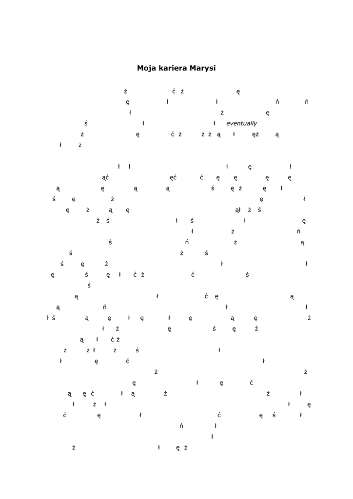 Wera Nachajska Moja kariera Marysi Po powrocie na pewno możemy powiedzieć, że: Iza porusza się dwa razy szybciej (po tym jak przez kilka miesięcy dochodziła do pracy półtorej godziny dzień w dzień, dyskretny marszobieg wszedł jej w krew do tego stopnia, że teraz dostaję zadyszki gdy idziemy gdzieś razem), bardzo ładnie mówi, na przykład eventually, jest pewniejsza siebie (to ważne). O sobie mogę powiedzieć, że wyjeżdżając byłem mężczyzną. Do Polski wracałem już jako kobieta. Do wyjazdu na Wyspy skłoniło mnie uczucie. Iza potrzebowała pieniędzy, ja chciałem jej pomóc oraz odpocząć od normalnych zajęć, zarobić parę tysięcy w parę miesięcy, bo pieniądze zawsze się przydadzą. Od początku nastawialiśmy się, że nie będzie łatwo. Nie baliśmy się, bo mimo, że pochodzimy z „dobrych” domów, nigdy nam się nie przelewało. Ja pamiętam, że jedną zimę, w czasie gdy ojciec znowu zniknął i żyliśmy ze skromnej pensji matki, przeżyliśmy na chlebie i powidłach śliwkowych z działki dziadka oraz dzięki darmowym obiadom w szkole. Dlatego nie zrobił na nas wrażenia pierwszy tydzień, w trakcie którego jechaliśmy tylko na zupkach chińskich, oraz to, że przez kolejne miesiące wydawaliśmy w Anglii na jedzenie mniej, niż gdybyśmy wydali w Polsce. Do Sunville zjawiliśmy się za późno – wszystkie prace w sektorze usługowym na te wakacje były zajęte. Musieliśmy więc kłamać, że chcemy zostać na zawsze. Mieliśmy jednak wypisane na czole: ‘jesteśmy Polakami i szukamy pracy na wakacje’ i Brytyjczycy albo nas zbywali, albo przeciągali okres rekrutacji tak długo, aby pozbyć się aplikantów, którzy mają tylko pieniądze na tydzień lub dwa szukania pracy. Z setek składanych ofert, Iza dostała właściwie jedną szansę i udało się – dostała pracę za minimalną stawkę. Ja natomiast już po tygodniu wiedziałem że nic nie dostanę, bo a) zjawiliśmy się za późno, b) nie umiem przekonywująco kłamać że nic nie umiem, c) jestem facetem ale nie mam 180 wzrostu. Mimo, że przeżyłem już kiedyś szukanie pracy (wyjechałem na studia do Warszawy i musiałem sam się utrzymać), szukanie pracy sezonowej w Sunville było koszmarem i przechodzimy przez to tylko dlatego, że w trudnych momentach ta druga osoba udaje, że jest silna i mówi: wszystko będzie dobrze. Zdarzało mi się wchodzić do knajp a potem wychodząc kręcić do Izy głową na nie – że niby nie ma tam pracy, mimo, że nie pytałem – nie miałem już siły. O ile w czasie rozmów kwalifikacyjnych w Polsce starałem się pokazać co potrafię, tutaj musiałem sukcesywnie zakrywać swoje umiejętności. Mówiłem zbyt dobrze po angielsku, z dnia na dzień pogarszałem swój akcent, pracownicyobcokrajowcy, którzy przyjmowali moje oferty z reguły mówili gorzej, czasem ledwo mówili. Już po kilku dniach zorientowałem się, że to kim jestem i co umiem tutaj nie gra najmniejszej roli, ważniejsze jest to, kiedy przyjechałem. Jedyną szansą jest więc szukanie pracy stałej, ale to trwa. Na „męskie” prace nie mam szans (kelnerzy muszą być wysocy, fabryki w wakacje nie zatrudniają), pozostają mi prace „dla kobiet”, ale nie w usługach, bo to już wzięte. Pracowałem w Polsce w biurze, więc uderzam w oferty dla sekretarek. Ubieram się w garnitur i składam cefałki, tylko w jednym pośredniaku biorą mnie poważnie. Przez kolejne 4 tygodnie przechodzę tam serię testów psychologicznych i traktują mnie trochę jako kuriozum - jestem w zasadzie jedynym facetem dla którego mają szukać takiej pracy. W końcu mam rozmowę w firmie ubezpieczeniowej, siedzimy w małym pokoju, a w około mnie – dosłownie z każdej strony – siedzi pięć kobiet w średnim wieku. One też mają na twarzy dziwny uśmieszek. Nie pytają mnie o moje doświadczenie zawodowe, ale o moją „osobowość”. Na początku nie wiem do końca jakich cech osobowości szukają, czy mam być bardziej „samodzielny” czy też chodzi im o osobę, która świetnie odnajduje się w grupie. Po kilku chwilach decyduję się na to drugie i opowiadam dyrdymały, jak to kiedyś pomogłem koleżance nauczyć się jeździć na rowerze (chodzi im o umiejętność pomagania innym). Wydaje mi się, że wypadłem dobrze, choć te dziwny uśmieszek na ich twarzach nie daje mi spokoju i w zasadzie nie mam zupełnie pojęcia, czy uważały, że się nadaję czy że jestem kompletnym idiotą. Po kolejnych 3 tygodniach, gdy mam już bilet powrotny, dzwonią do mnie z pośredniaka, że dostałem tę pracę. Ale już wtedy miałem wszystko skalkulowane – chcemy wrócić za 6 tygodni, rozpoczynanie pracy teraz zupełnie się nie kalkuluje – mogę zarobić wyłącznie sumę symboliczną, bo koszta na początku są duże. Ale już nie chodzi tu o pieniądze – po prostu muszę już wyjechać, jestem emocjonalnie wykończony. Nie dlatego, że szukałem tak długo pracy – to zeszło już dawno na dalszy plan, moim pierwszym zajęciem bardzo szybko stało się pomaganie innym, tym pracującym. Muszę zaznaczyć: nie chodzi tu o Izę. Mimo, że to ona nas utrzymuje, a ja gotuję, sprzątam, piorę itd., ani razu nie usłyszę od niej złego słowa. Mimo, że to ona pracuje o wiele ciężej niż ja, narażona jest na większy stres i wyjeżdżając do pracy miała więcej do stracenia, jest cały czas dla mnie wyrozumiała i kochająca. Gdybyśmy mieszkali sami w jakimś przytulnym mieszkanku, mój pobyt w Anglii byłby cudowny. Jednak stać nas tylko na wynajęcie pokoju w domu z innymi polskimi gastarbajterami. Dla nich stanowię istne UFO, bo tu wszyscy dbają tylko o siebie, a ja dbam o kogoś innego. Szczególnie dla Staszka – znajomego znajomych, do którego dzwonię kilka tygodni przez przyjazdem z pytaniem jak wygląda sytuacja z pracą i czy nie ma gdzie się zatrzymać. Zwalnia się pokój w domu, w którym on mieszka wraz z swoją świeżopoślubioną żon