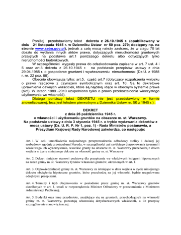 PoniŜej przedstawiamy tekst dekretu z 26.10.1945