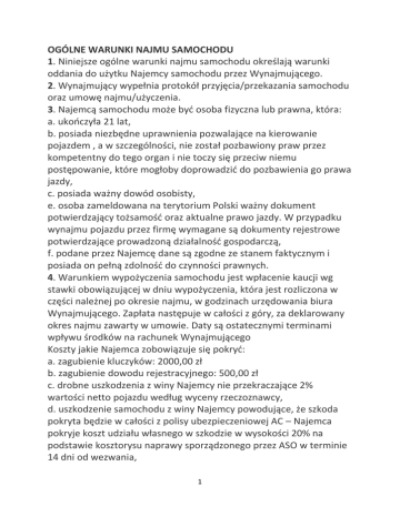 OGÓLNE WARUNKI NAJMU SAMOCHODU 1. Niniejsze ogólne