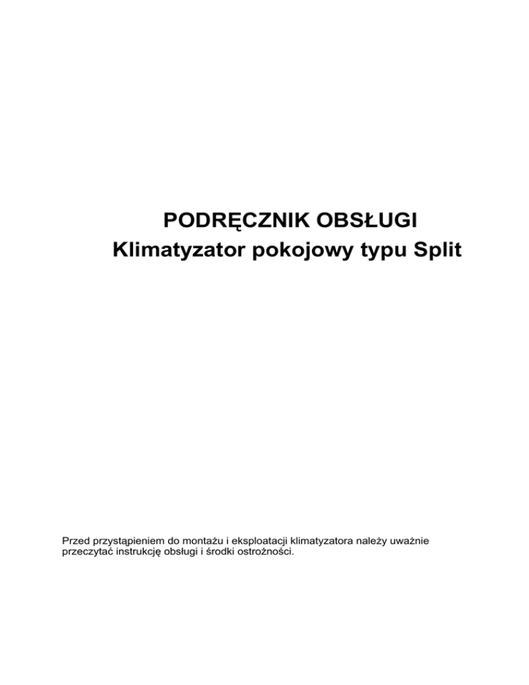 PODRĘCZNIK OBSŁUGI Klimatyzator pokojowy typu Split