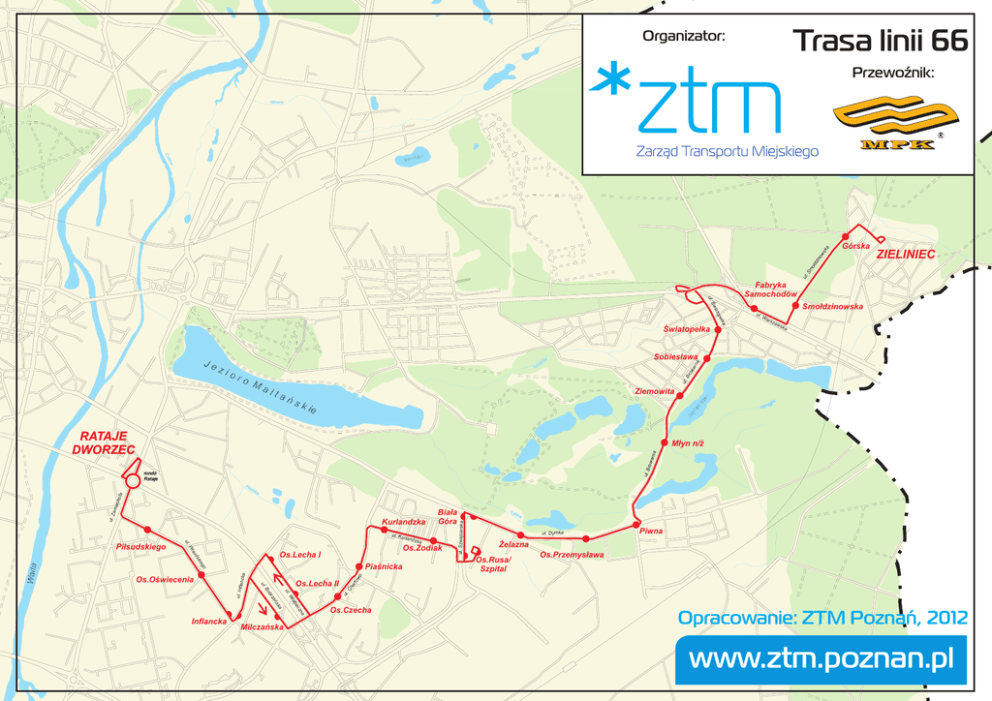 Główna Trasa linii 66 Organizator: Przewoźnik: WARTA Główna R bin Cy Staw Kajka ZIELINIEC ul. Sm oł d zin ow sk a a Górska ul. Fabryka Samochodów pe iato Św arn a Sobiesława ul. Br ow rka Ziemowita w ńs ta ta k ie iS o M al kla ska sk or Sz zaw łyń zi Smołdzinowska Wa rs M Je łka Światopełka ul. RATAJE DWORZEC ul. B row arn a Młyn n/ż rondo Rataje śn ic a Kurlandzka ul. Ku rland łs Pi ul. Os.Lecha I ul. a zn rac ka ńs Milczańska iat W rza Inflancka bin a ul. Dymka Piwna Żelazna Os.Przemysława ar to wo Os.Rusa/ Szpital Ch Os.Lecha II b Bo ul. Infla ncka Piaśnicka ul. Warta o ieg sk ud Os.Oświecenia zka Os.Zodiak Cy ul. Piłsudskiego Biała Góra ul. Szwajcarska ul. Z a me n ho fa Pia Os.Czecha Opracowanie: ZTM Poznań, 2012 www.ztm.poznan.pl