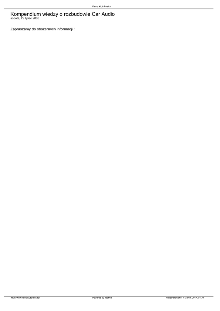Fiesta Klub Polska Kompendium wiedzy o rozbudowie Car Audio sobota, 29 lipiec 2006 Zapraszamy do obszernych informacji ! http://www.fiestaklubpolska.pl Powered by Joomla! Wygenerowano: 4 March, 2017, 04:30