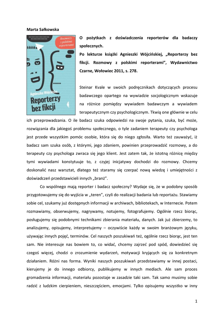 1 Marta Sałkowska O pożytkach z doświadczenia reporterów dla